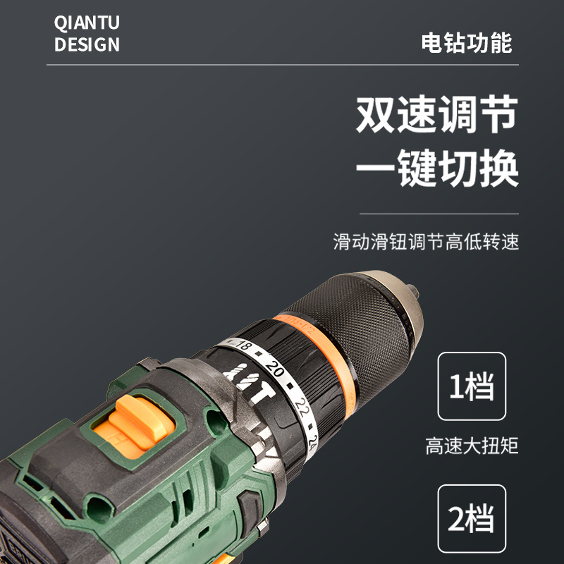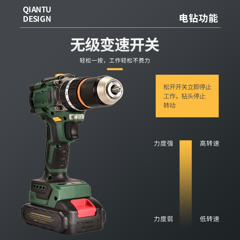 多功能家用手电钻13mm夹头 套装三合一纯铜无刷冲击锂电钻