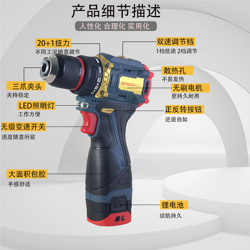 DK03多功能无线电动螺丝刀 16.8V家用高速充电式无刷小钢炮手电钻