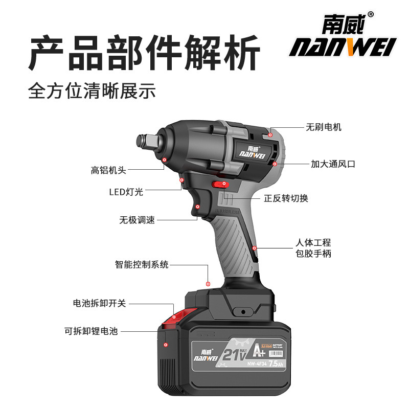- 经典款无刷扳手【7.5AH两电】+豪华配件