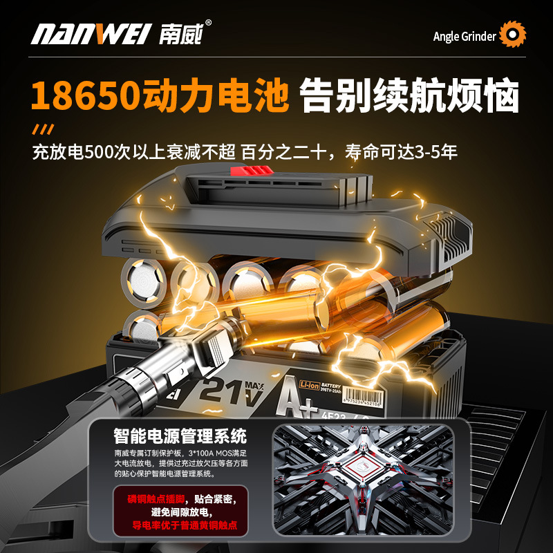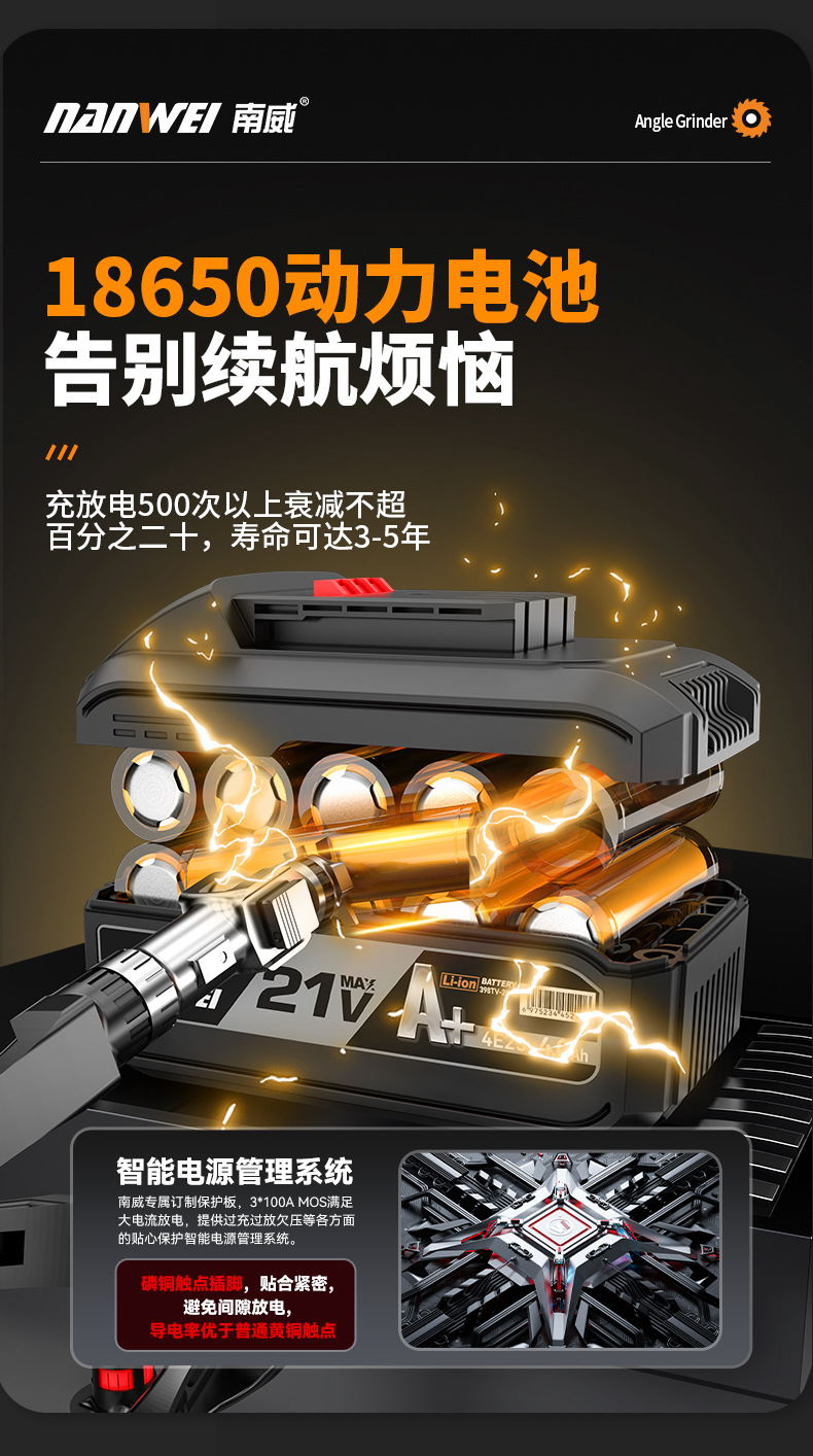 - 【骑士系列】21v无刷3寸角磨机2.5AH一电一充+金属切割套餐