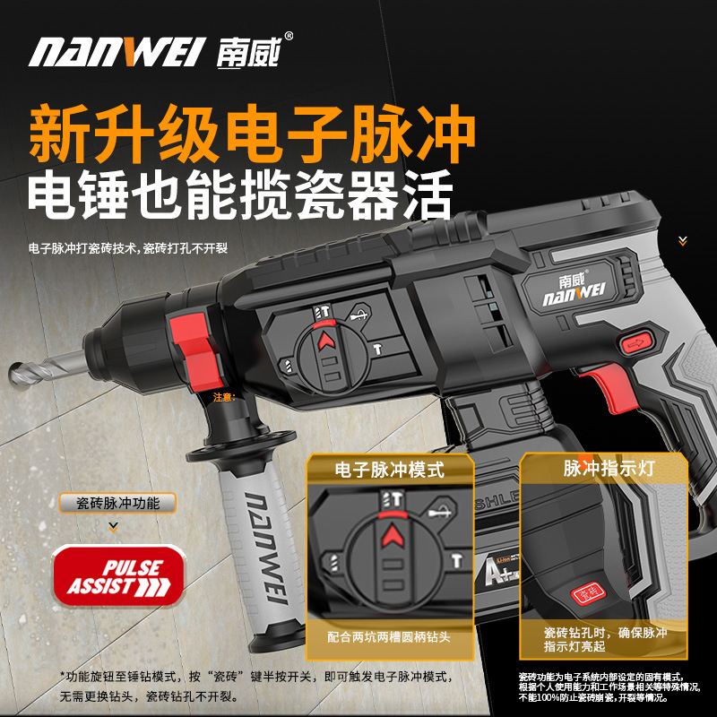 - 瓷砖脉冲功能电锤4.0AH一电+标配