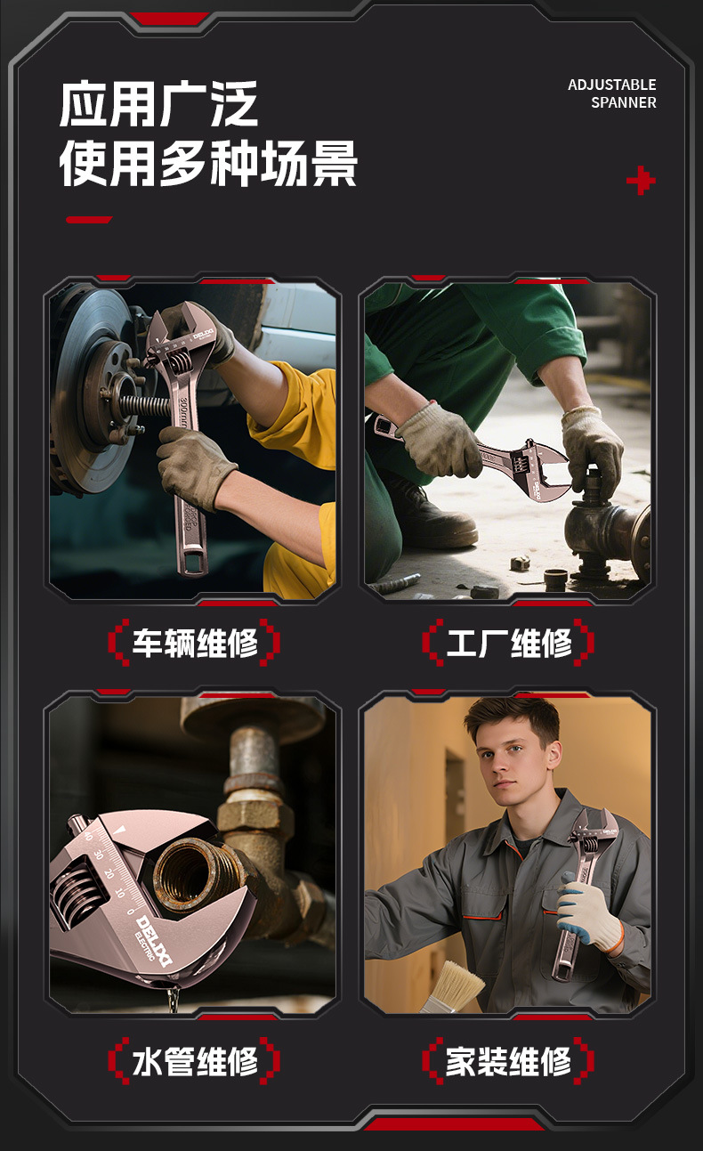 电气手动活扳手大开口10寸万能活口扳手多功能12寸活动扳手