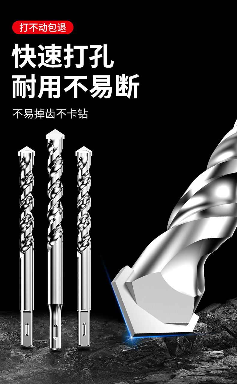 铬钒钢加长冲击钻电锤钻头混凝土穿墙方柄圆柄打孔开槽合金钻