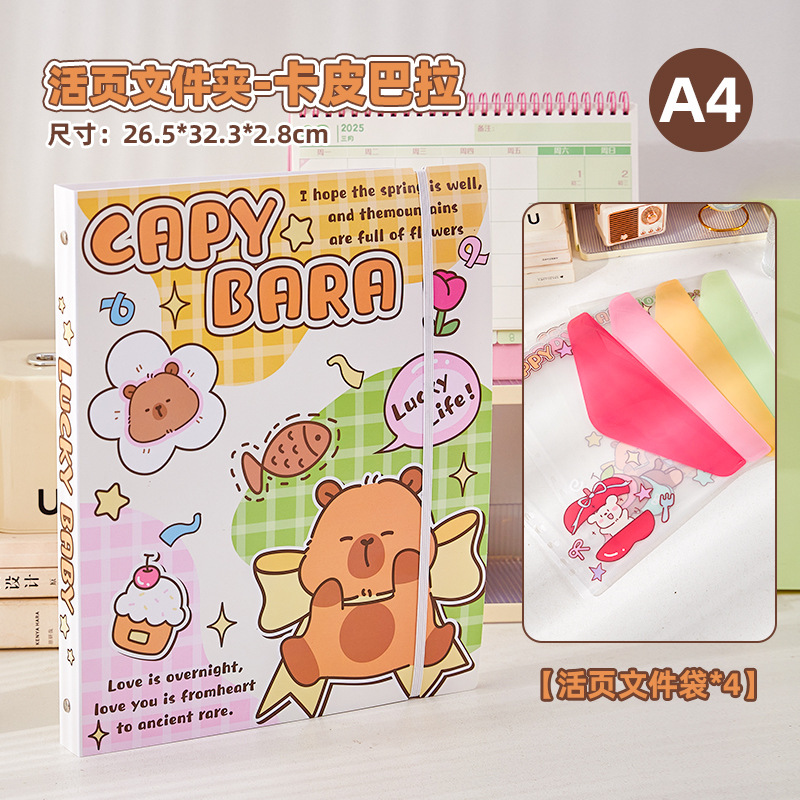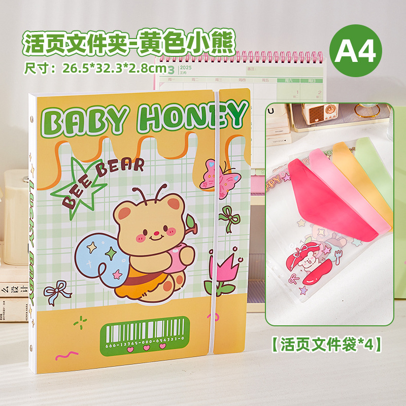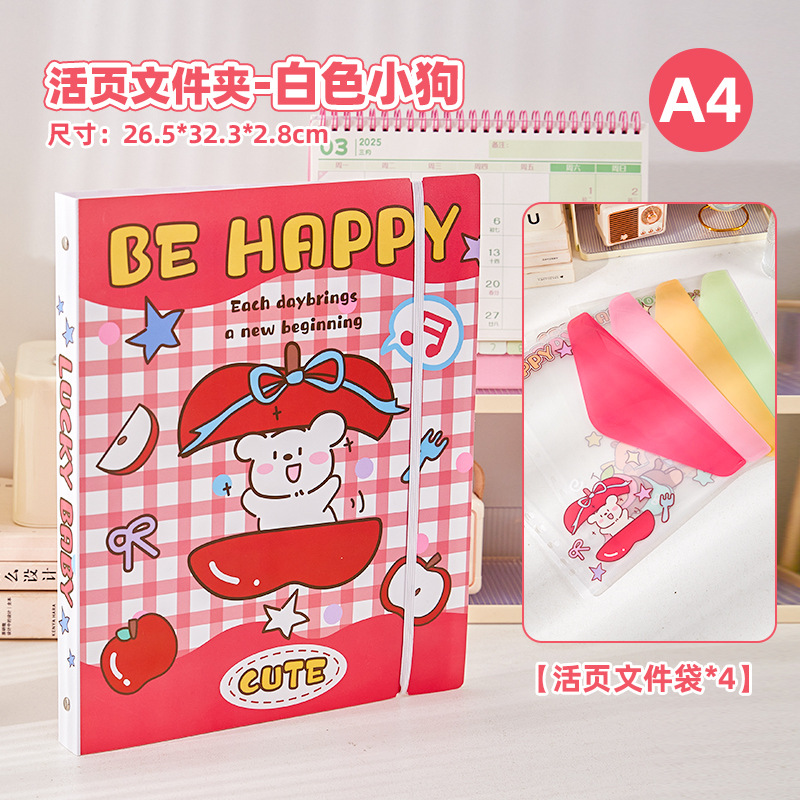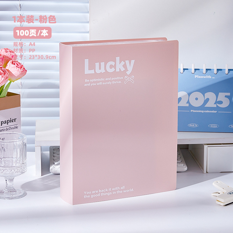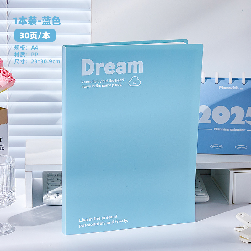 A4活页文件夹多孔资料册学生试卷收纳袋透明简约ins风办公收纳册