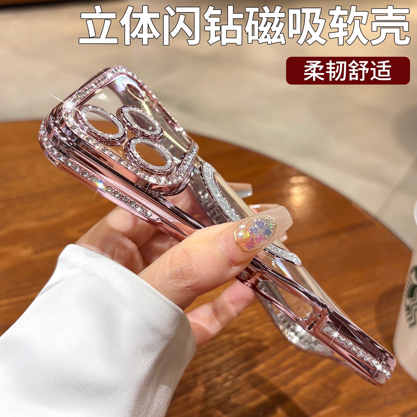 适用iPhone17ProMax手机壳边钻磁吸苹果16透明电镀闪粉防摔保护套