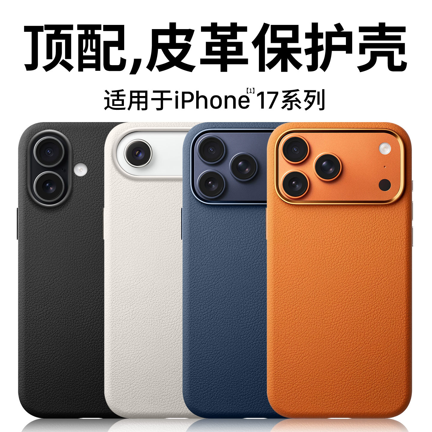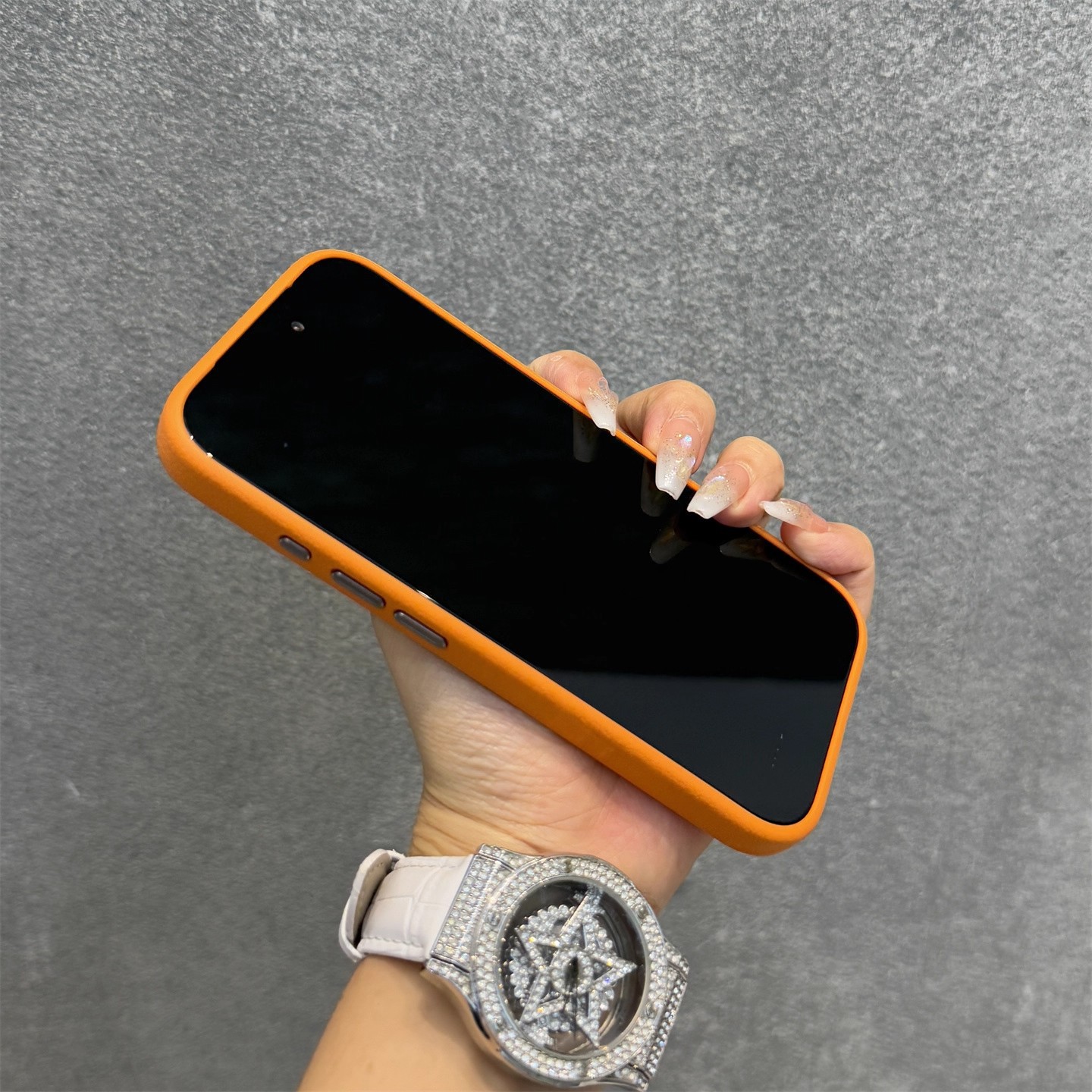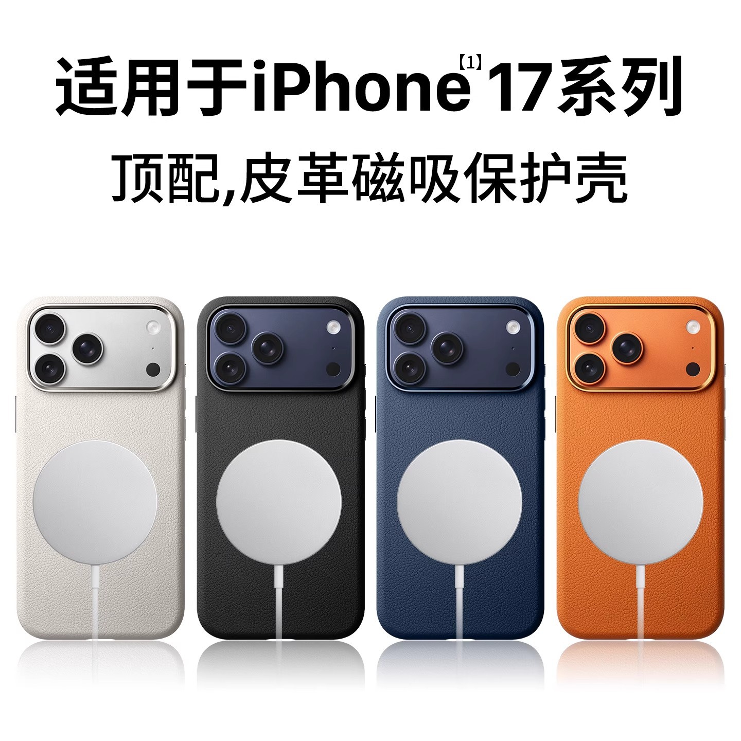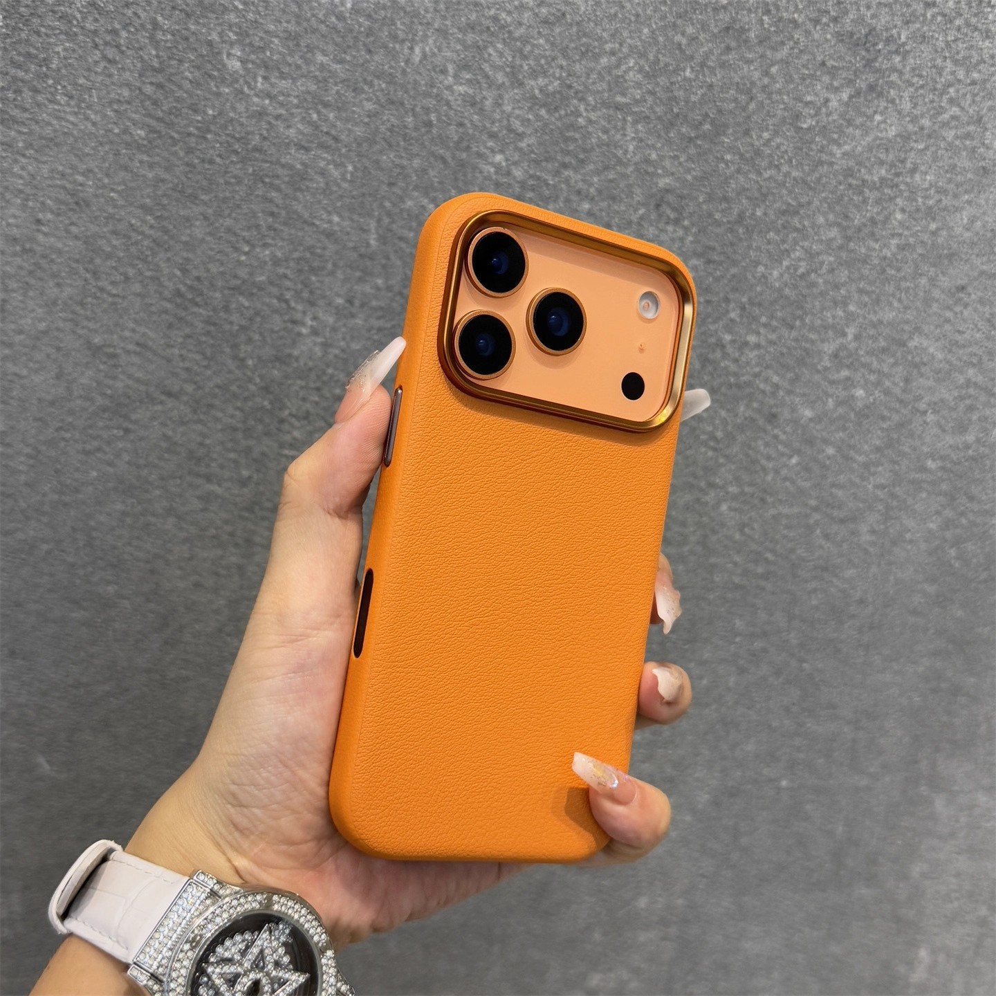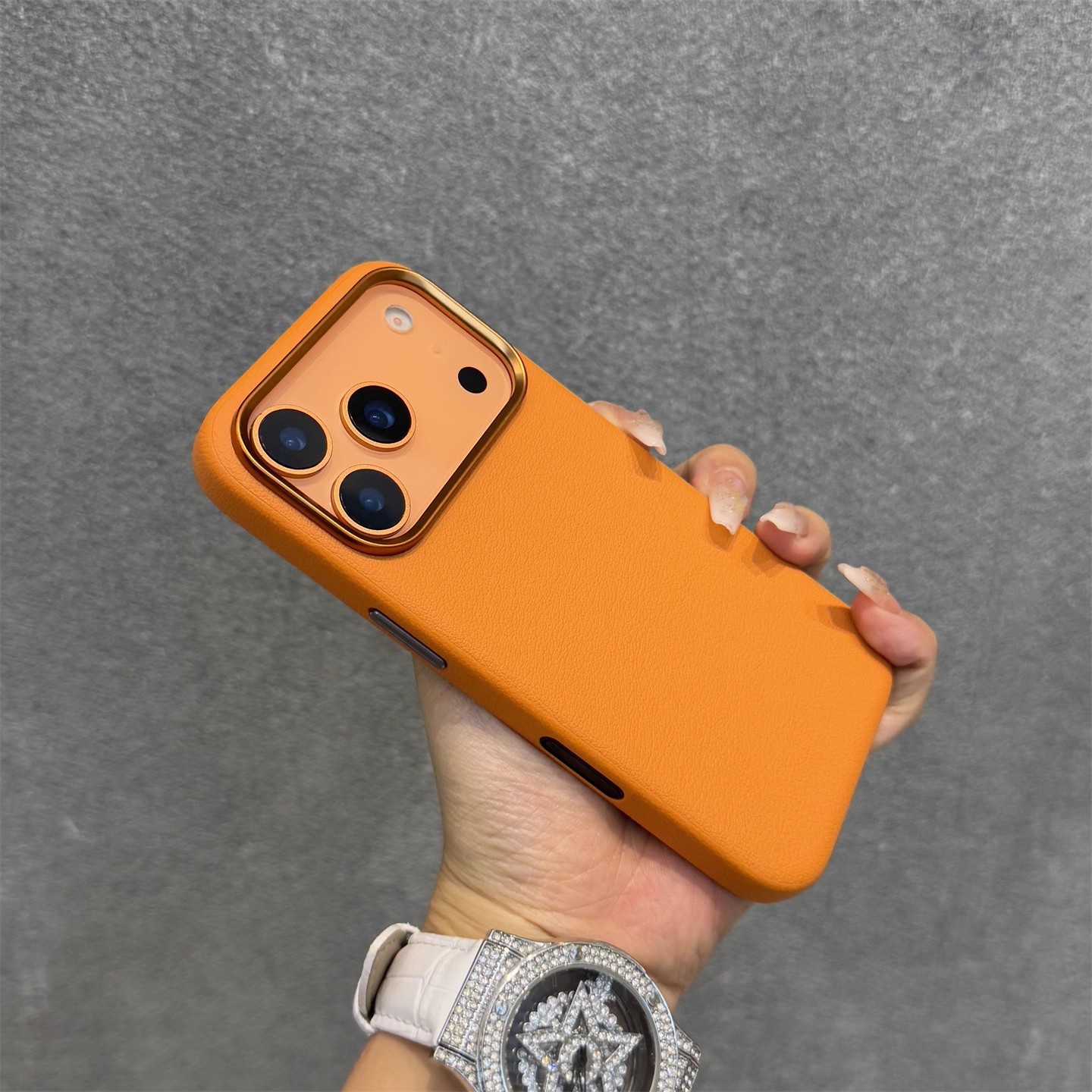 苹果17橙色手机壳皮革磁吸带按键iPhone17ProMax素皮保护套