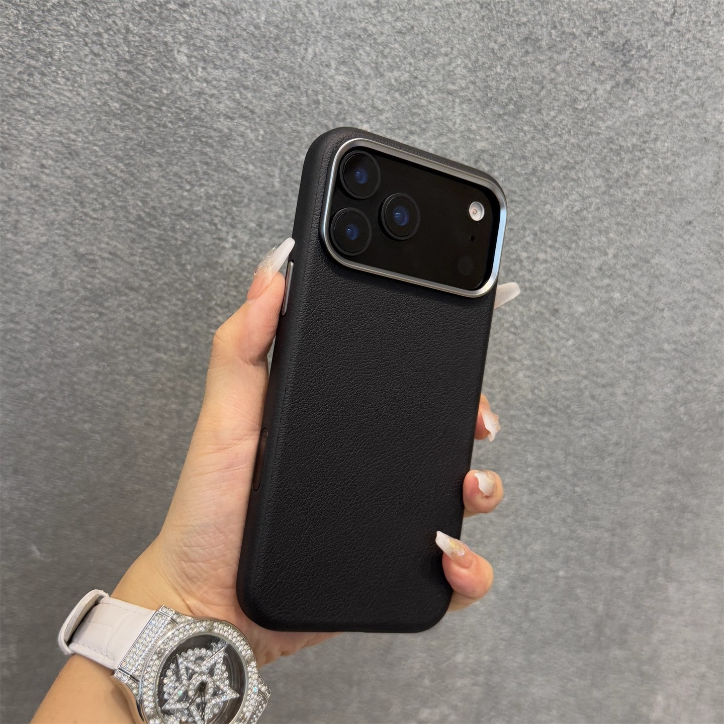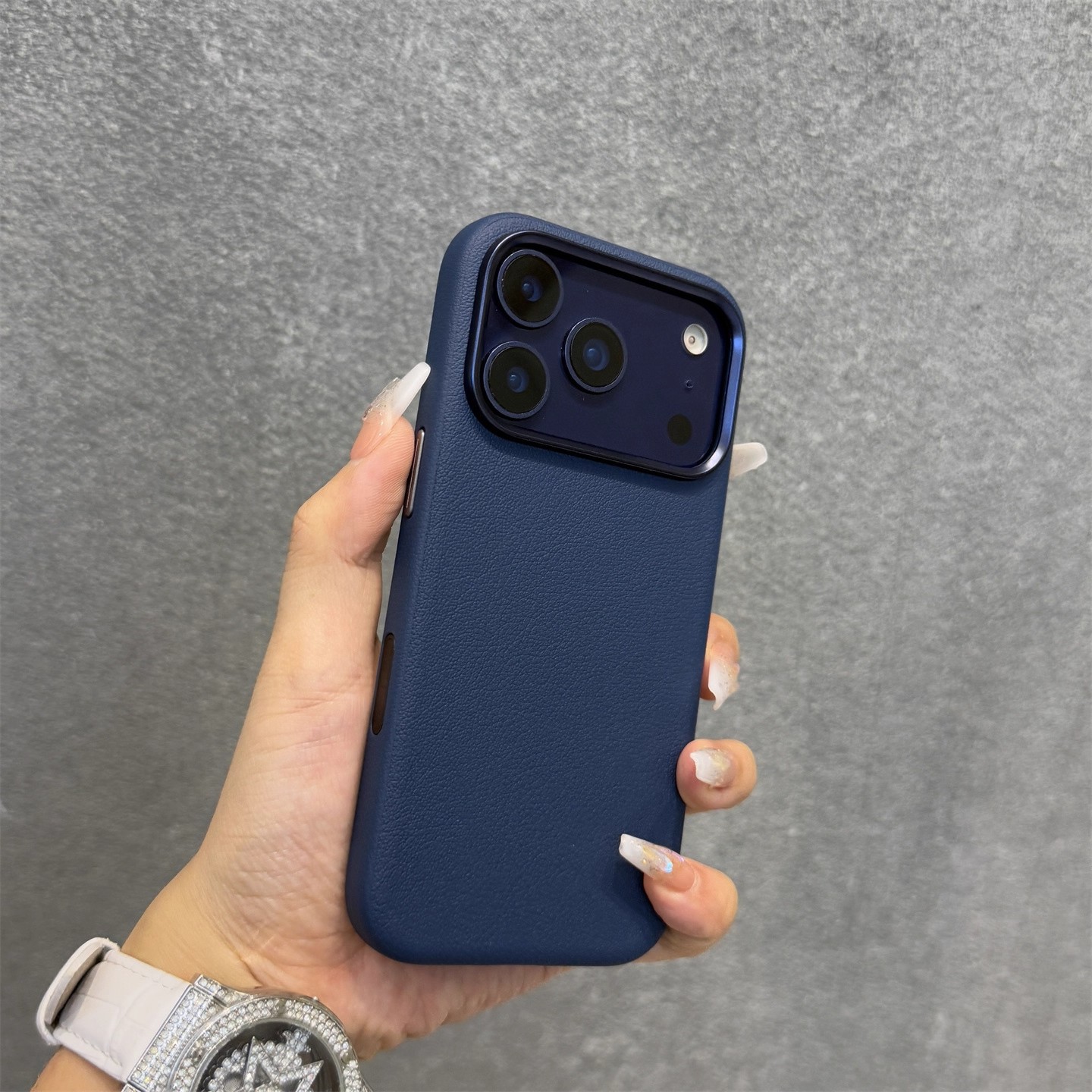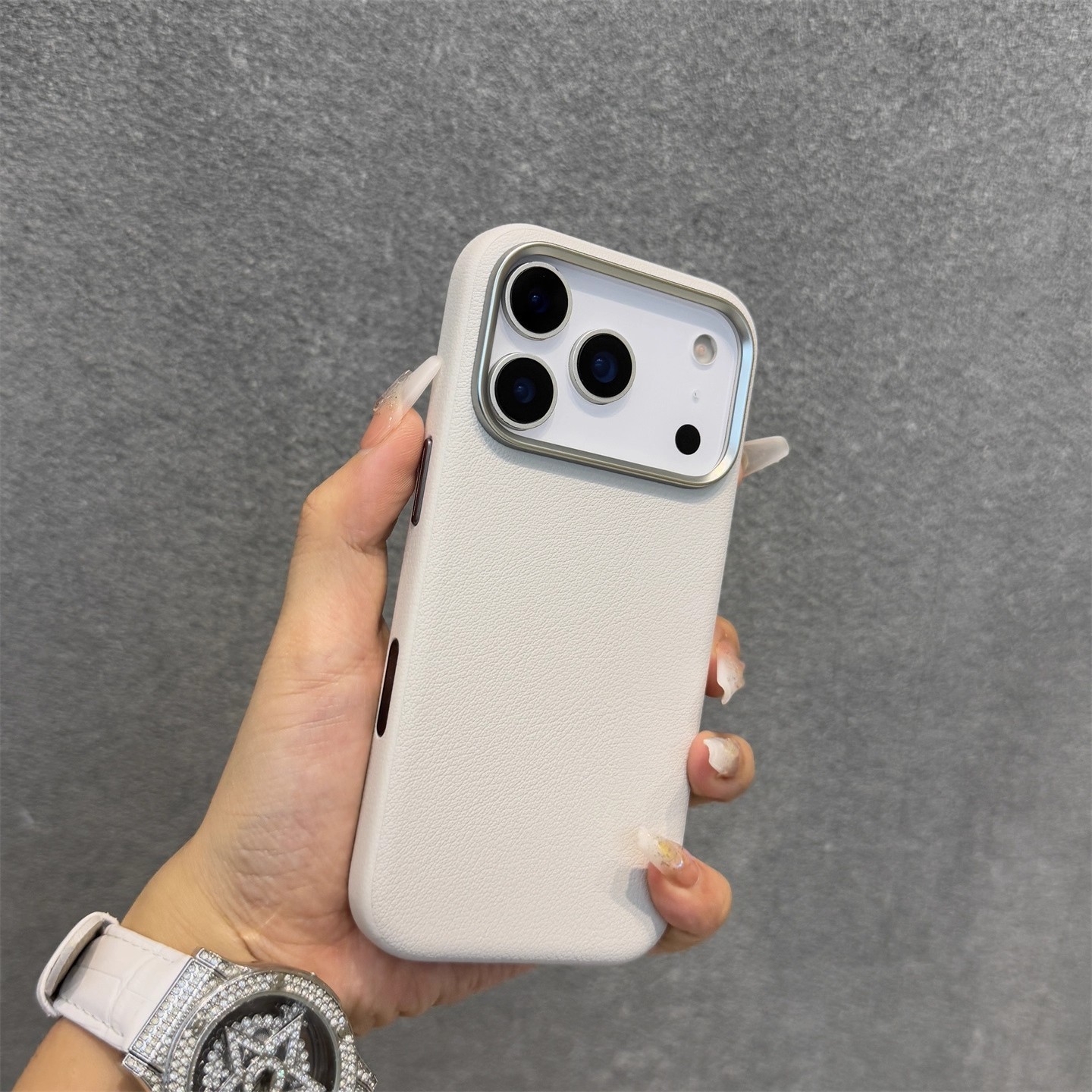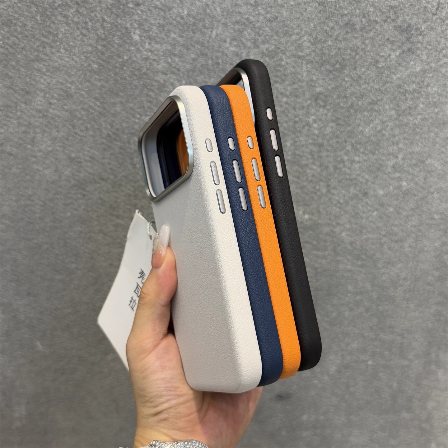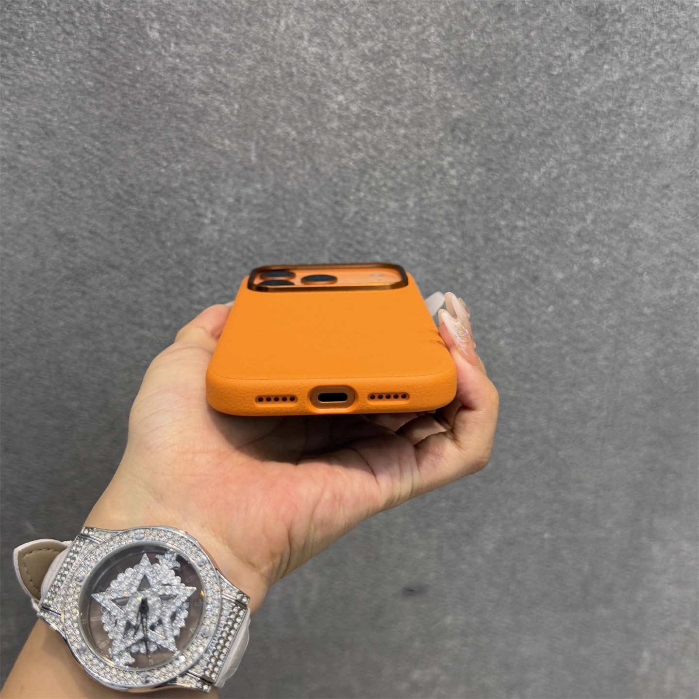 苹果17橙色手机壳皮革磁吸带按键iPhone17ProMax素皮保护套