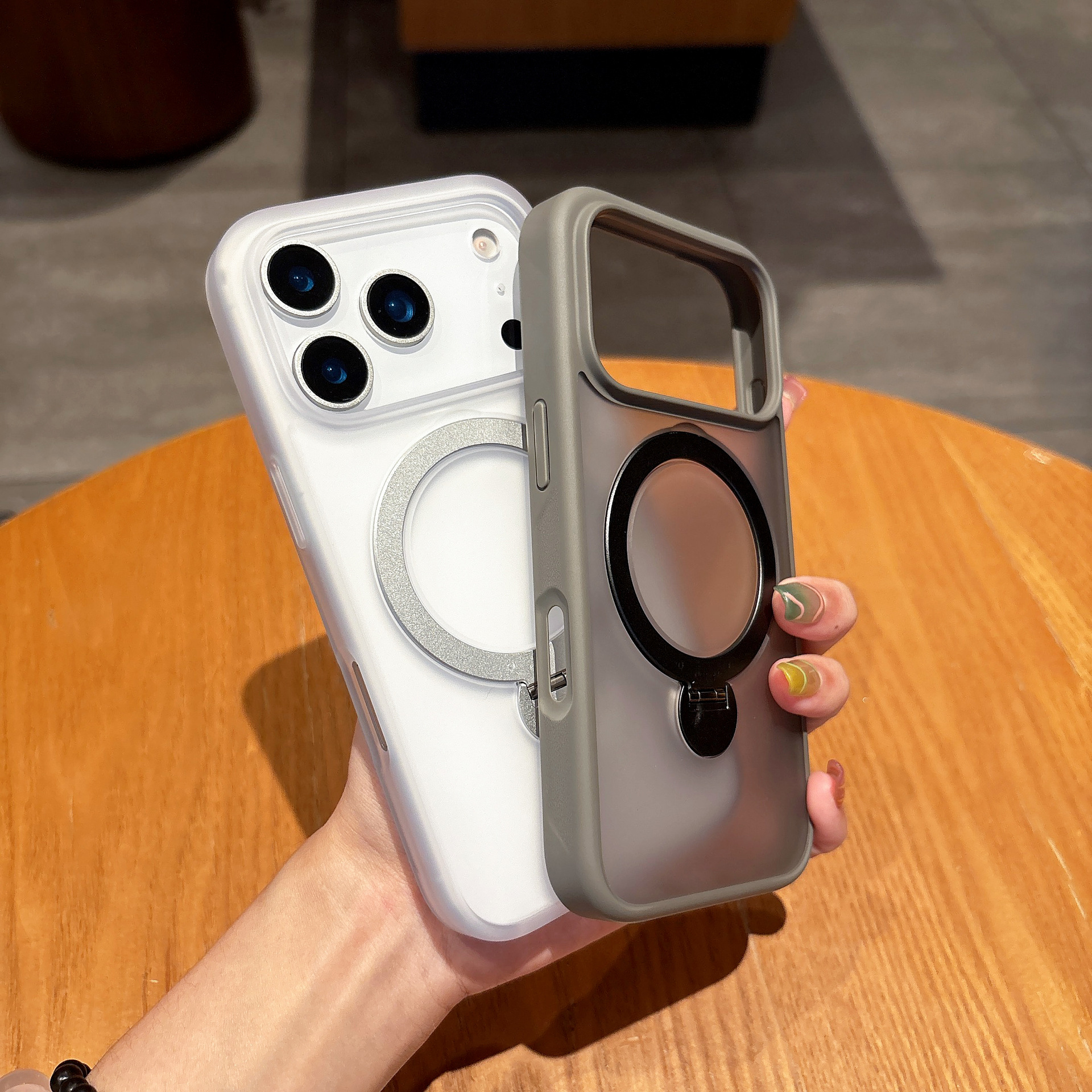 适用iPhone17磨砂支点手机壳苹果16promax旋转隐形支架磁吸保护套