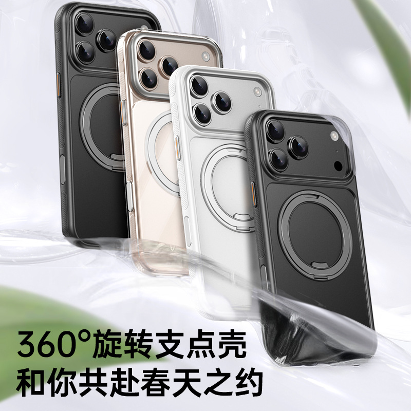 适用苹果17手机壳360旋转齿轮支架iPhone17ProMax磨砂磁吸保护套