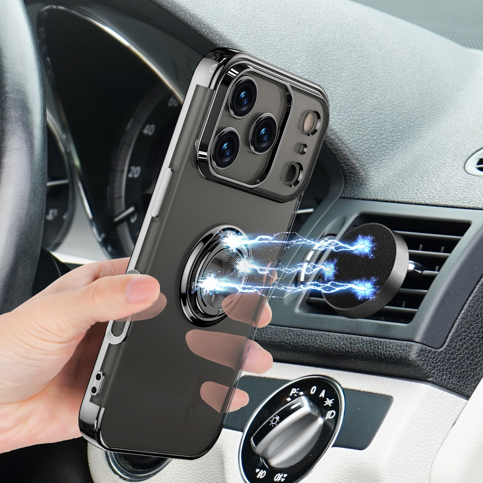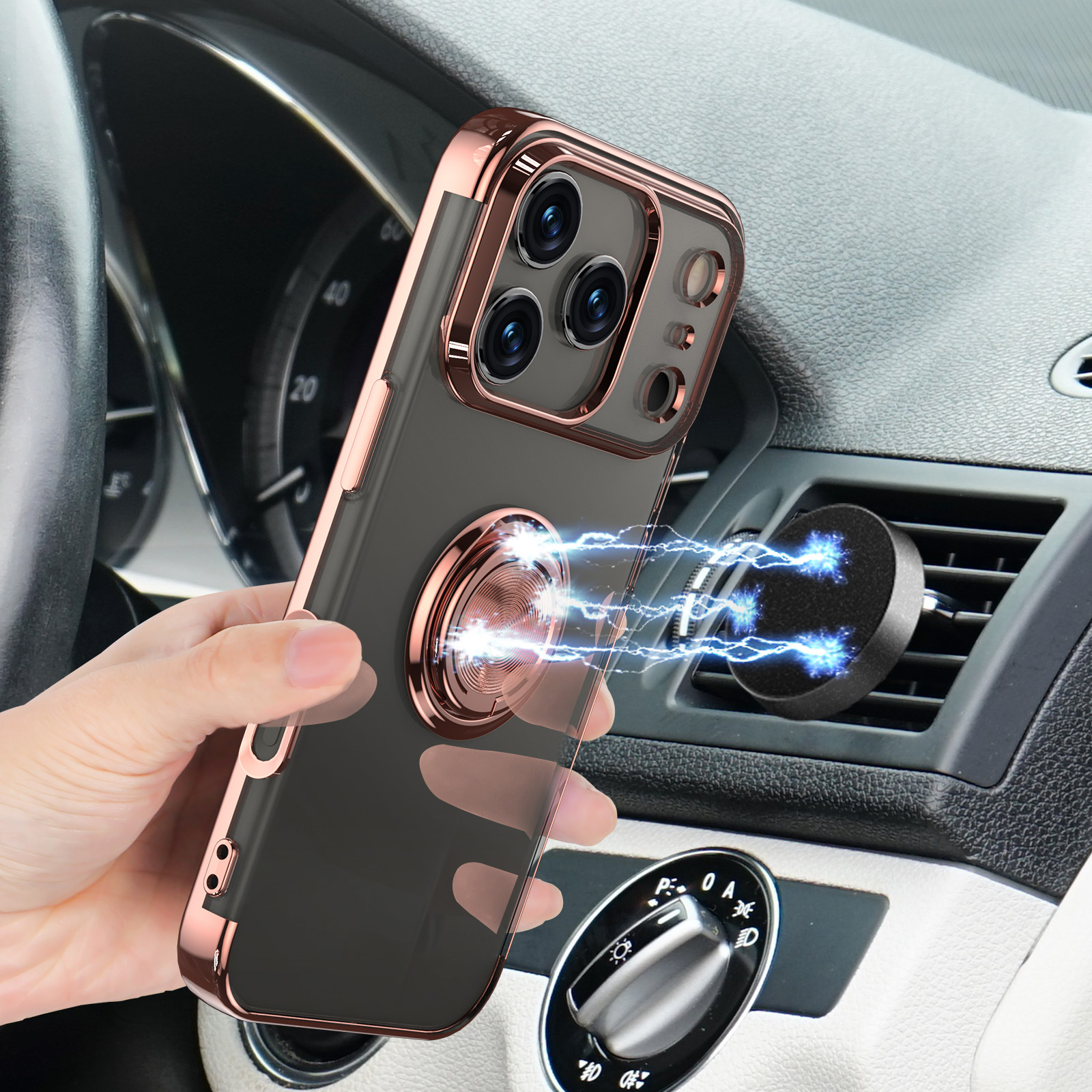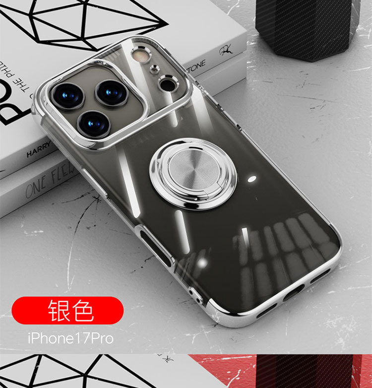 适用iPhone17手机壳电镀透明指环苹果16ProMax车载支架保护套