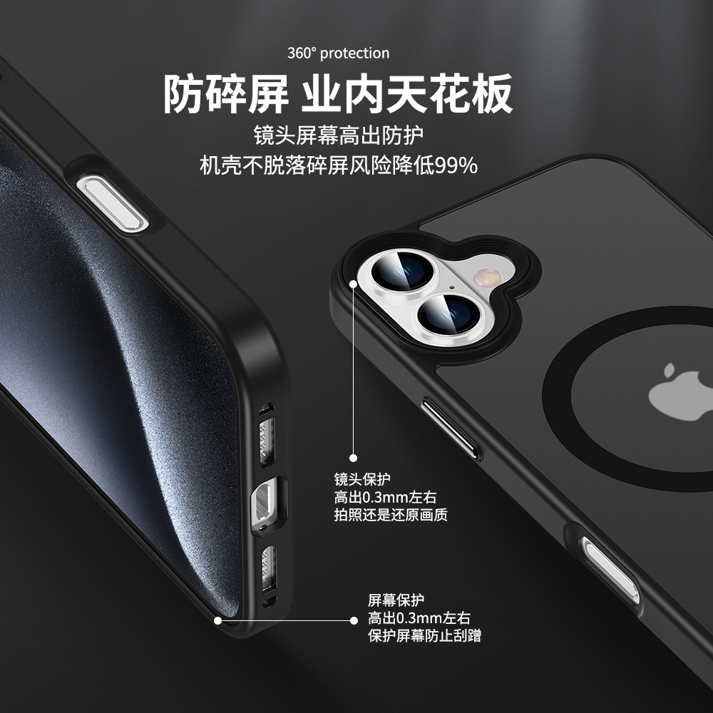 适用iPhone17手机壳磨砂肤感苹果16磁吸充电15ProMax防摔保护套14