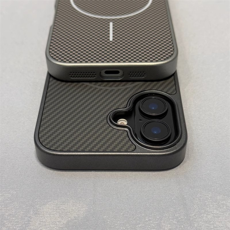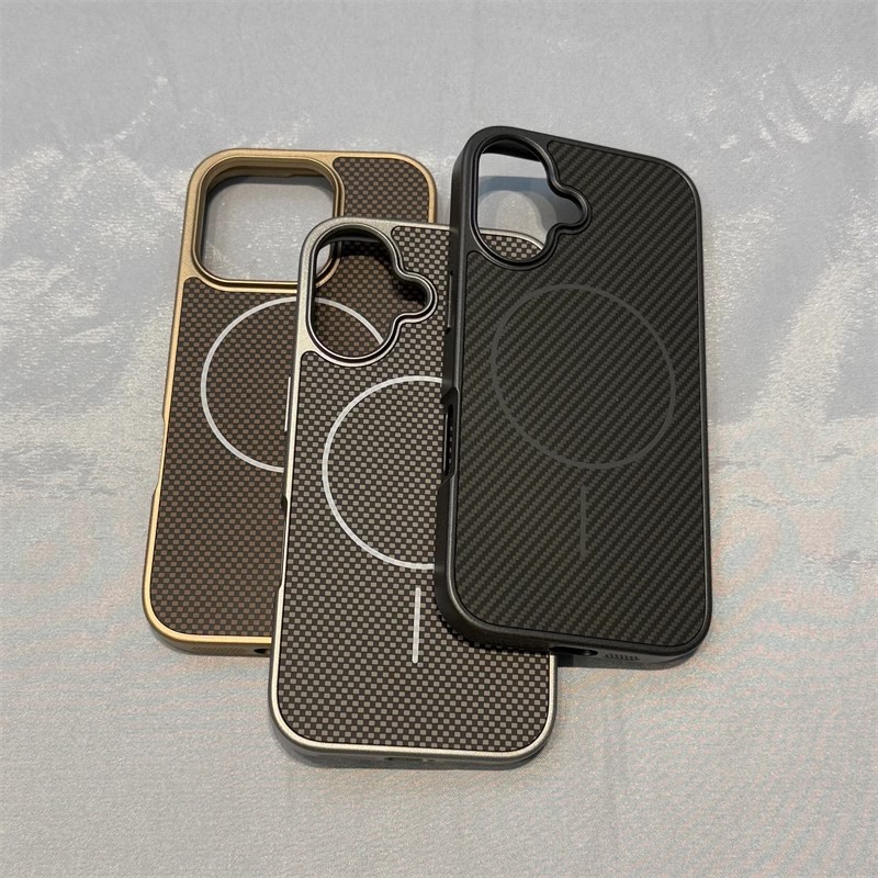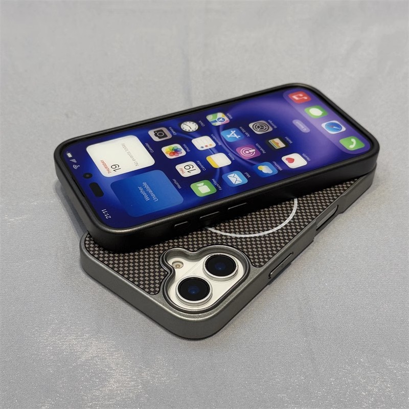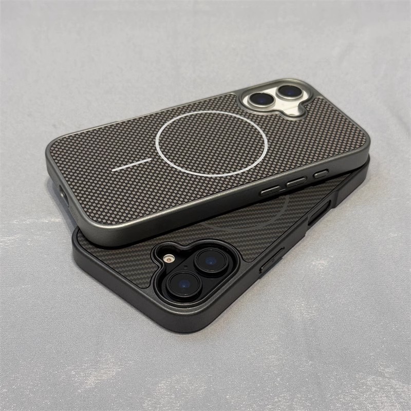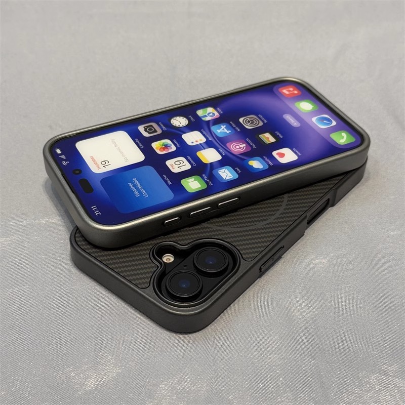 适用iPhone17air手机壳碳纤维纹细圈磁吸苹果16ProMax防摔保护套