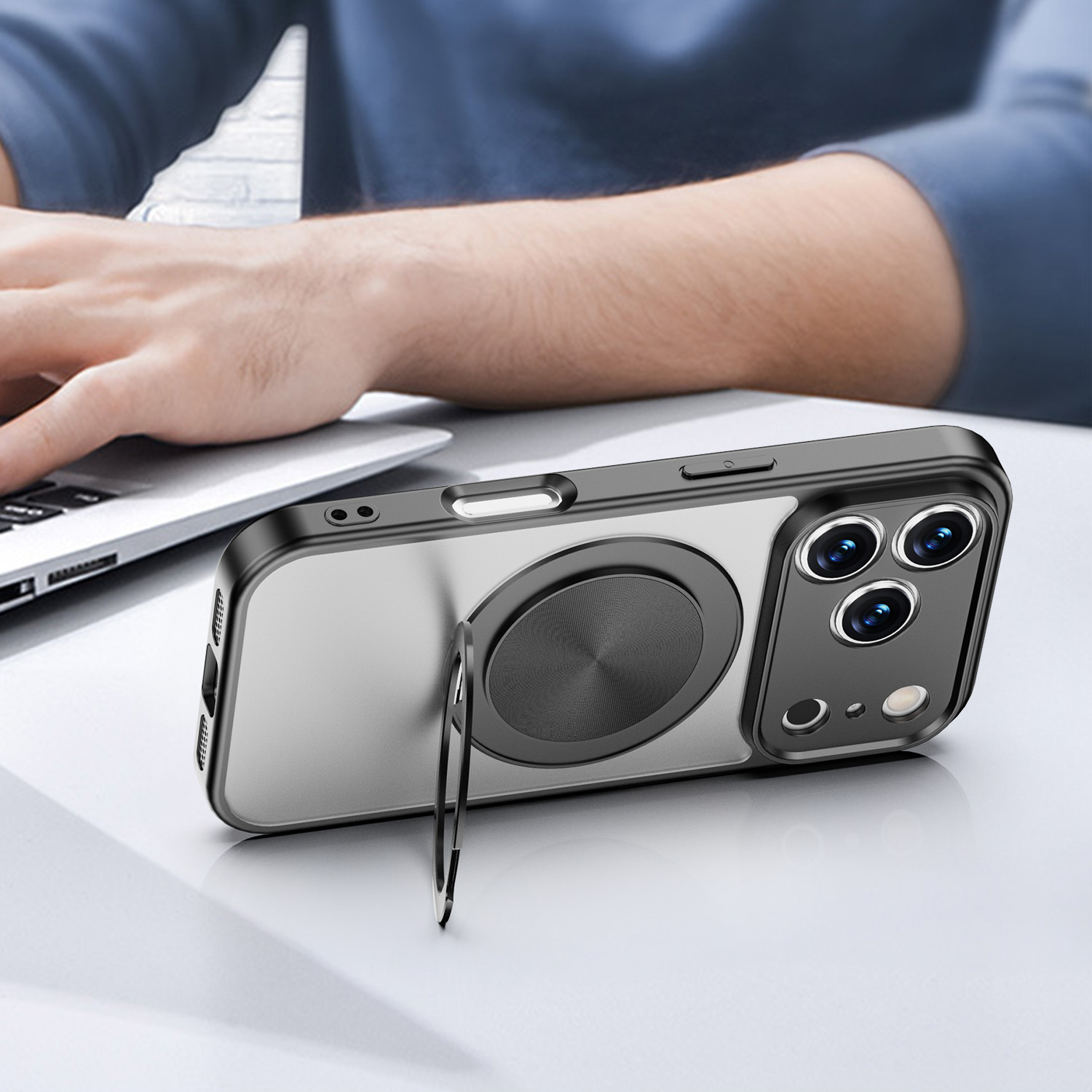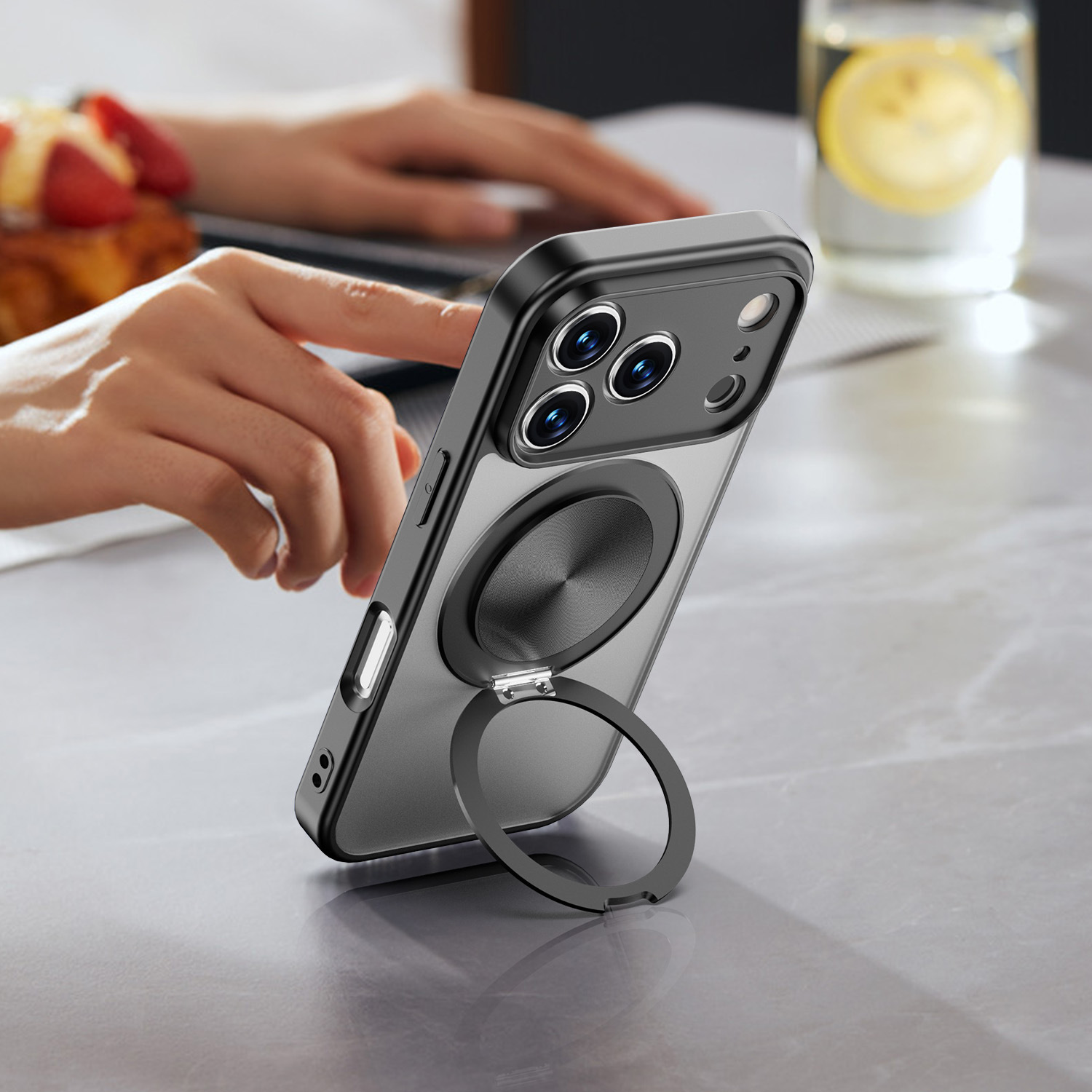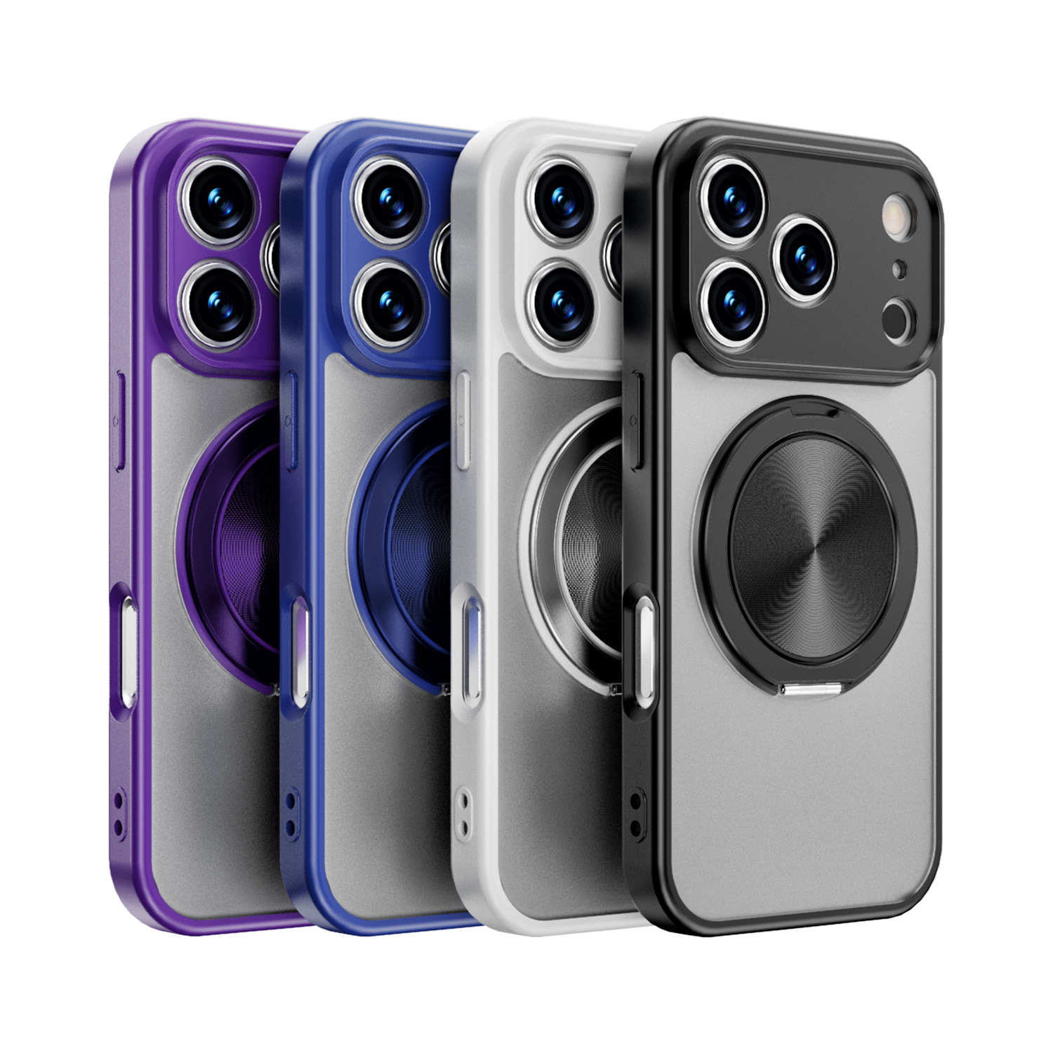 适用iPhone17手机壳肤感360旋转支架苹果17ProMax磁吸支点保护套