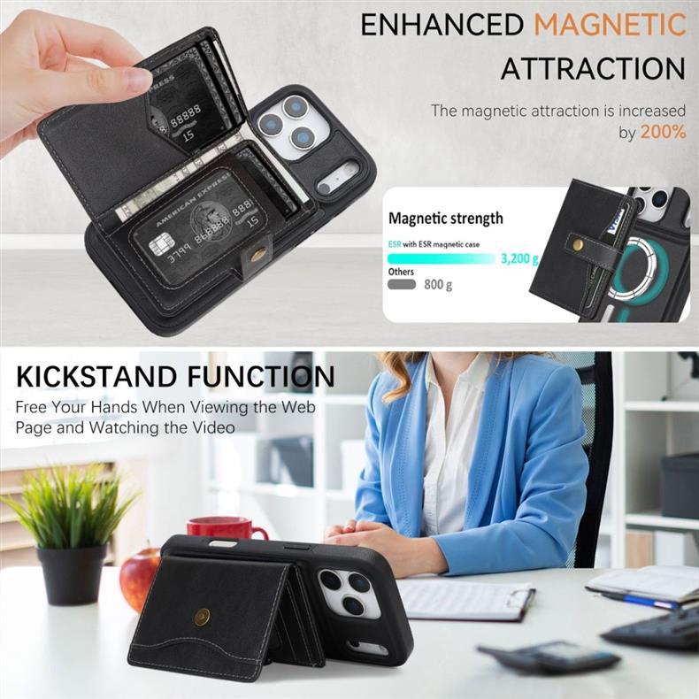 苹果17手机壳16保护套iPhone15高档强磁吸卡包钱包二合一保护套薄
