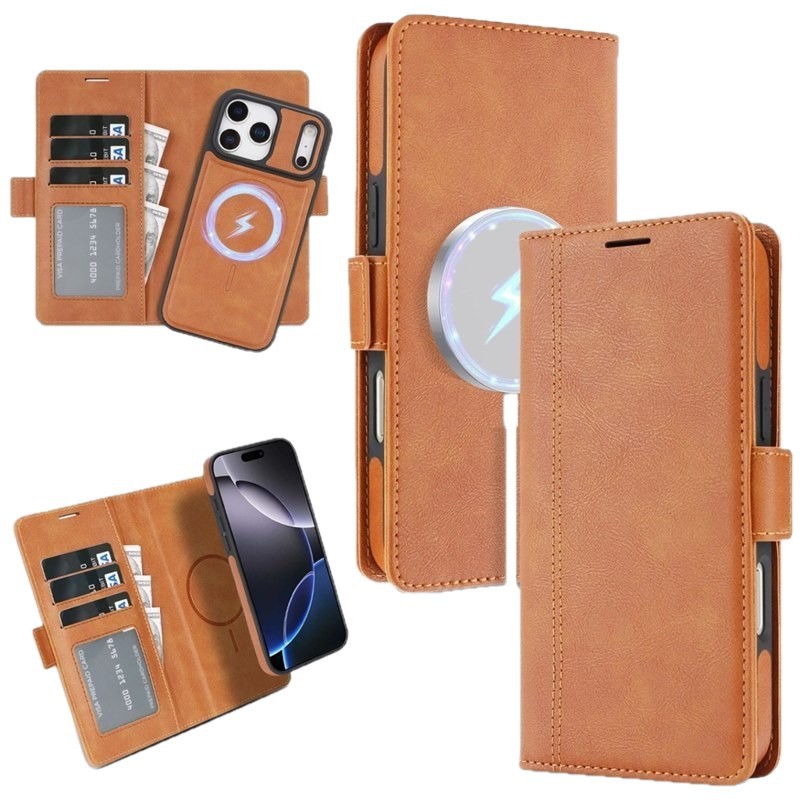 iPhone17皮套高档皮革苹果16无线磁吸手机壳分体皮套插卡15保护套