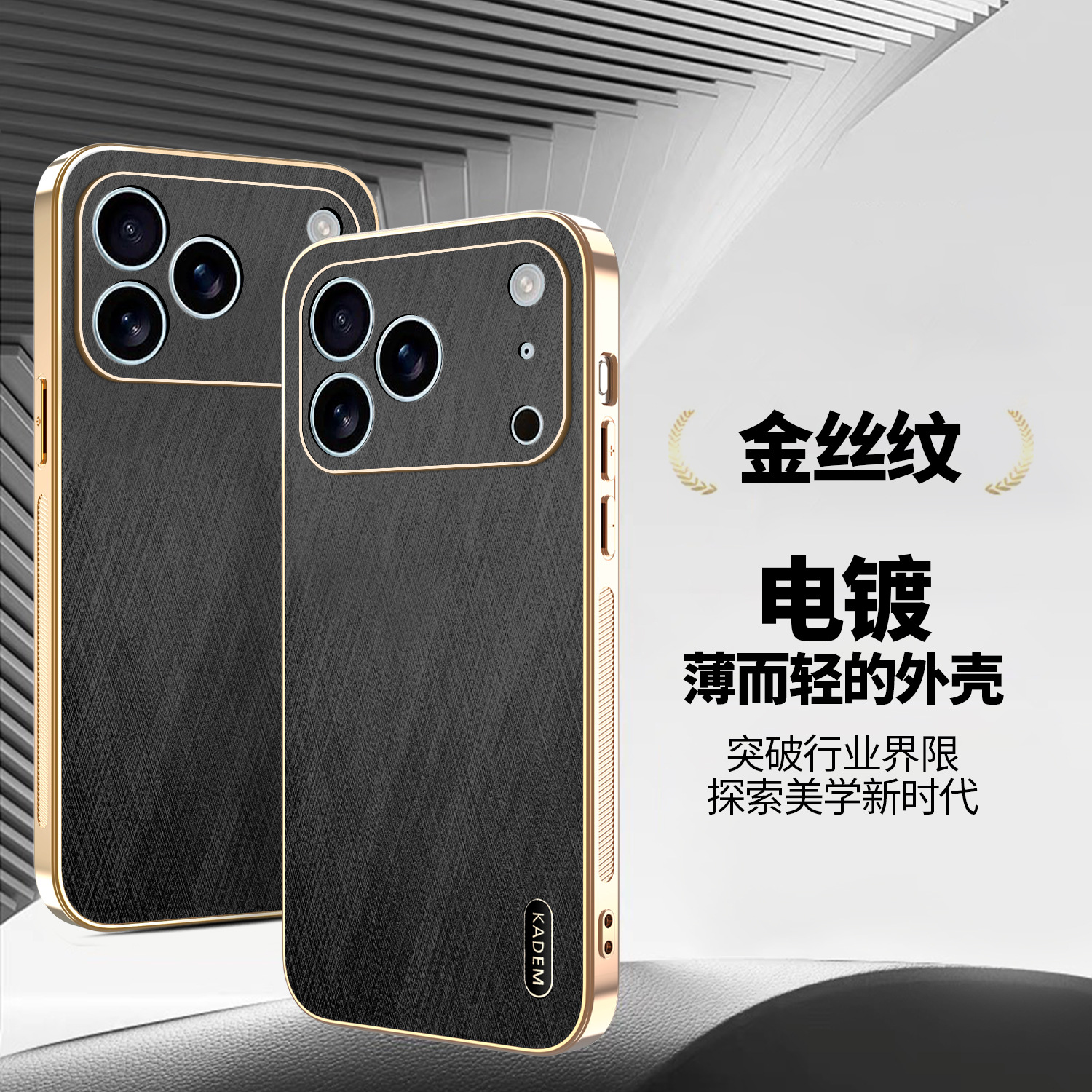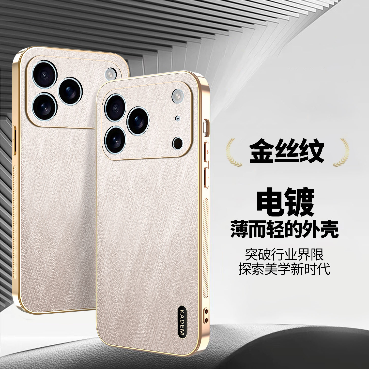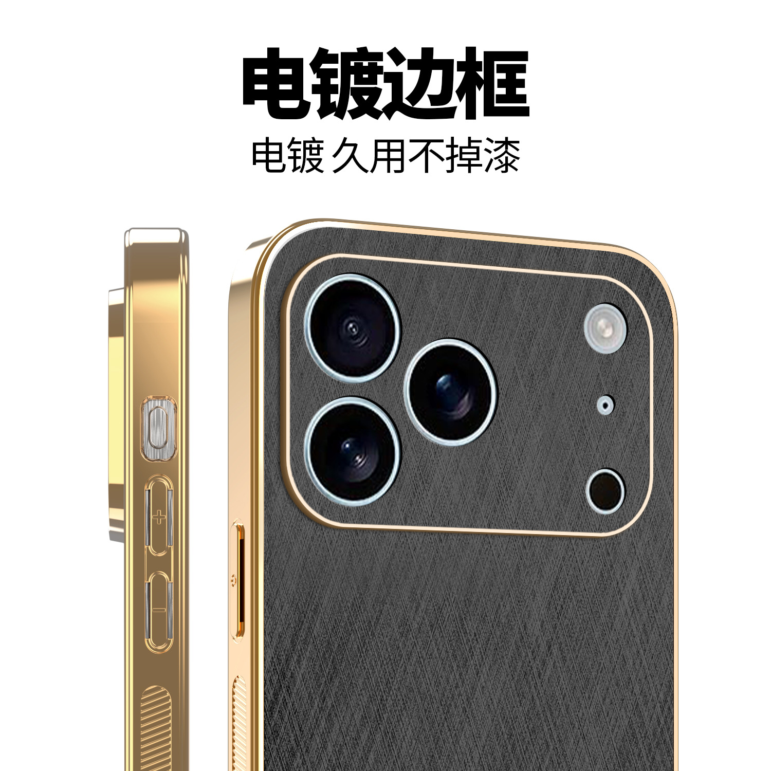 适用iPhone17Promax电镀金丝纹手机壳苹果17Air防摔16磁吸保护套