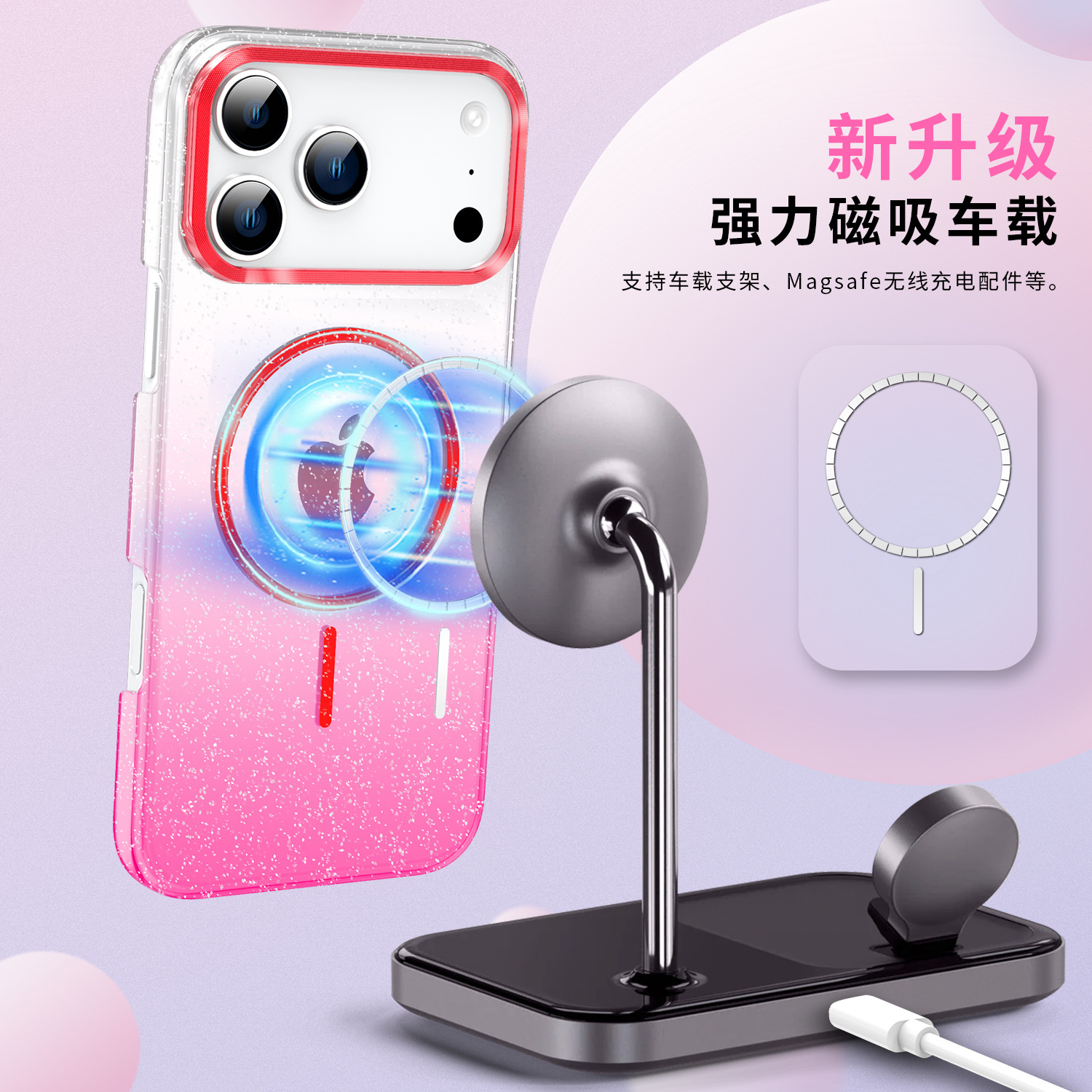 - 金钻闪粉磁吸壳【透紫】
