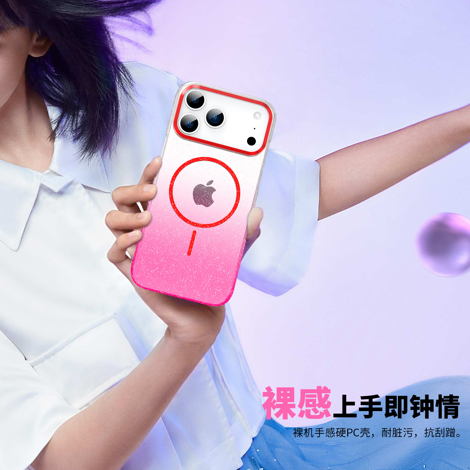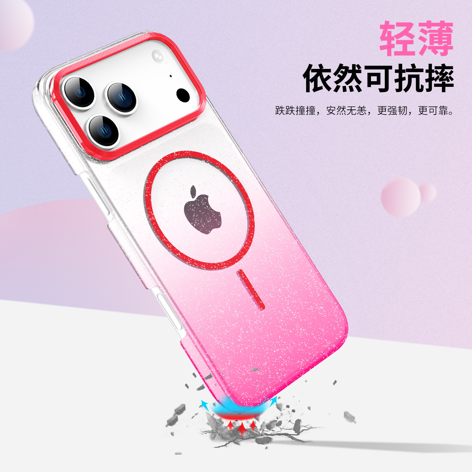 - 金钻闪粉磁吸壳【透红】