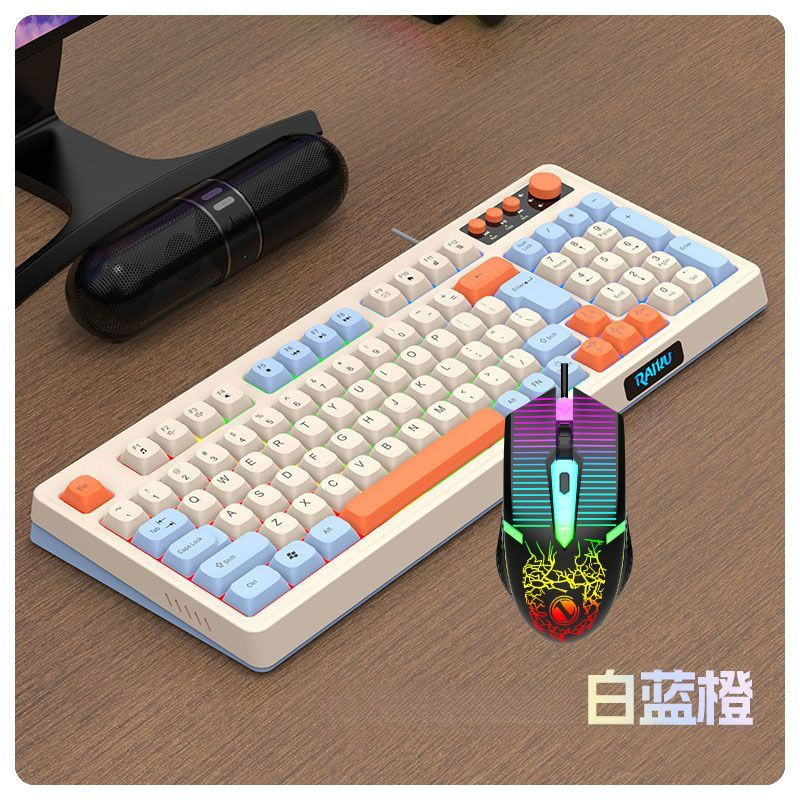 奶白/蓝橙 98键键盘+4D鼠标-键盘轻音