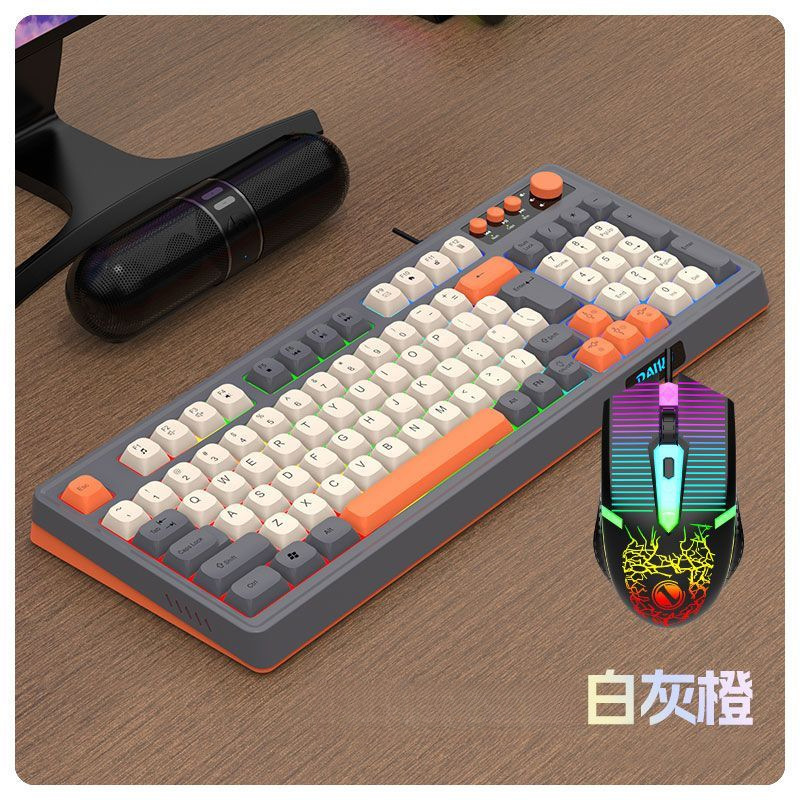 奶白/灰橙 98键键盘+6D鼠标-键盘轻音