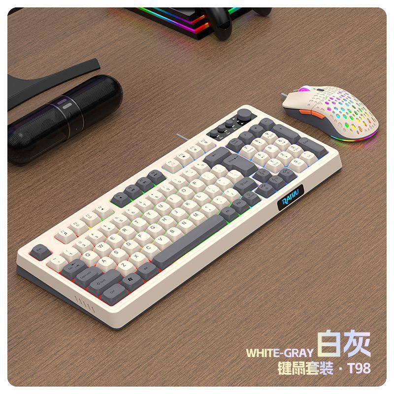 【白灰】98键有线键鼠套装-键盘轻音