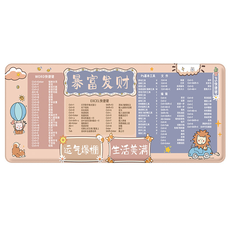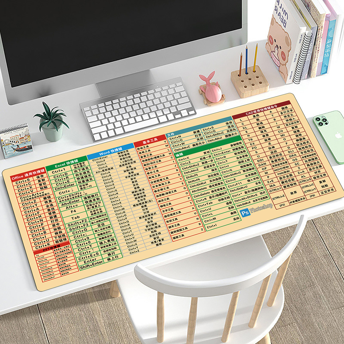 办公超大号快捷键鼠标垫ps电脑wps防滑CAD英文键盘垫