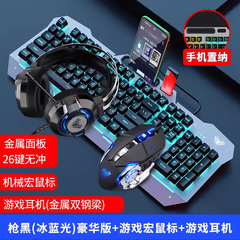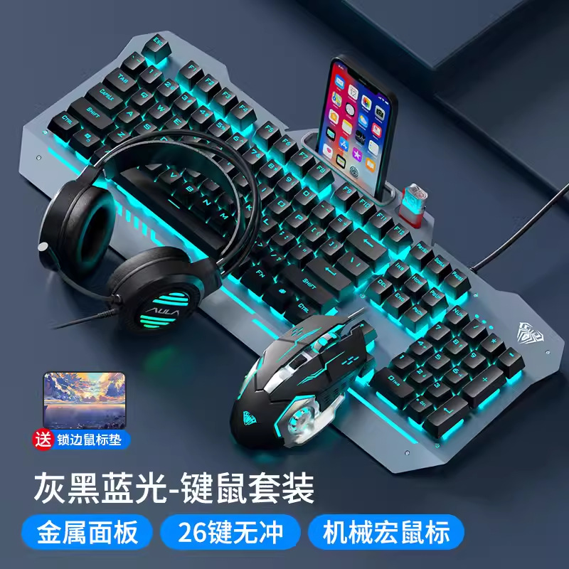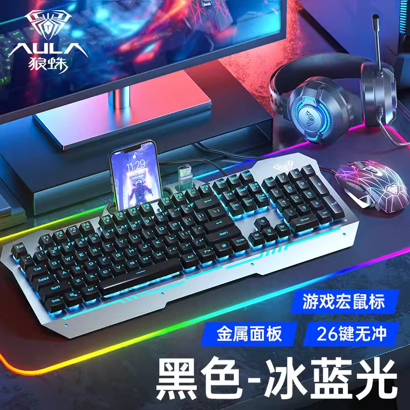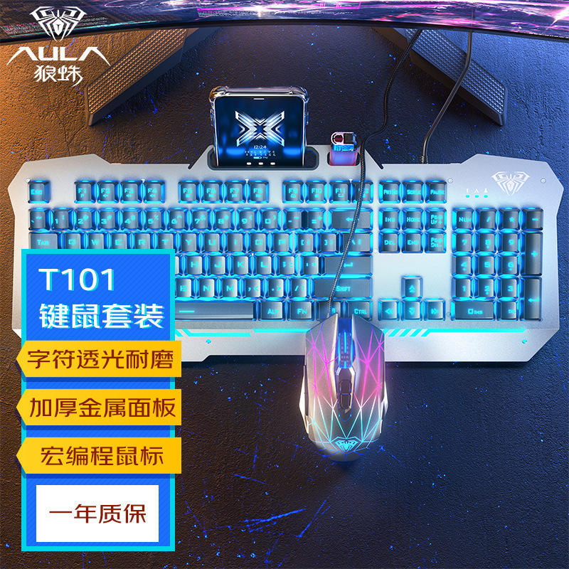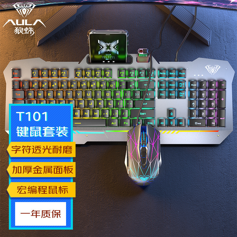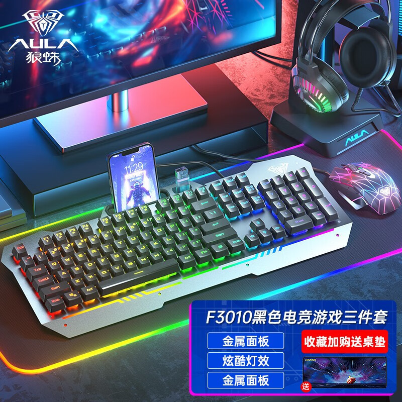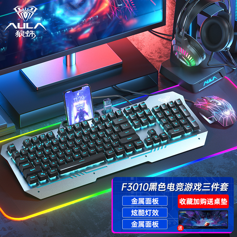 狼蛛T101/F3010机械手感键盘有线电竞游戏键鼠耳机套装二件三件套