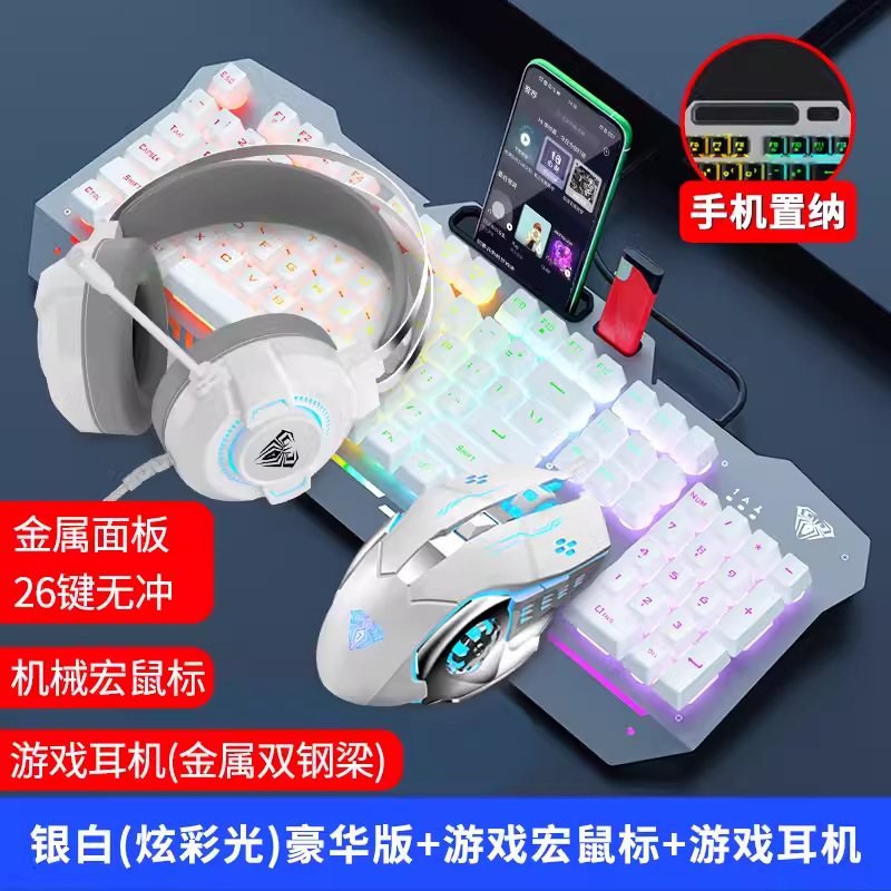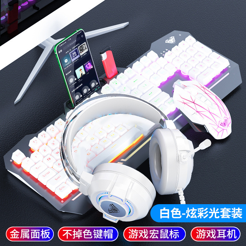 - F3010白色炫彩光+S20白色鼠标+S606白色耳机+L11垫