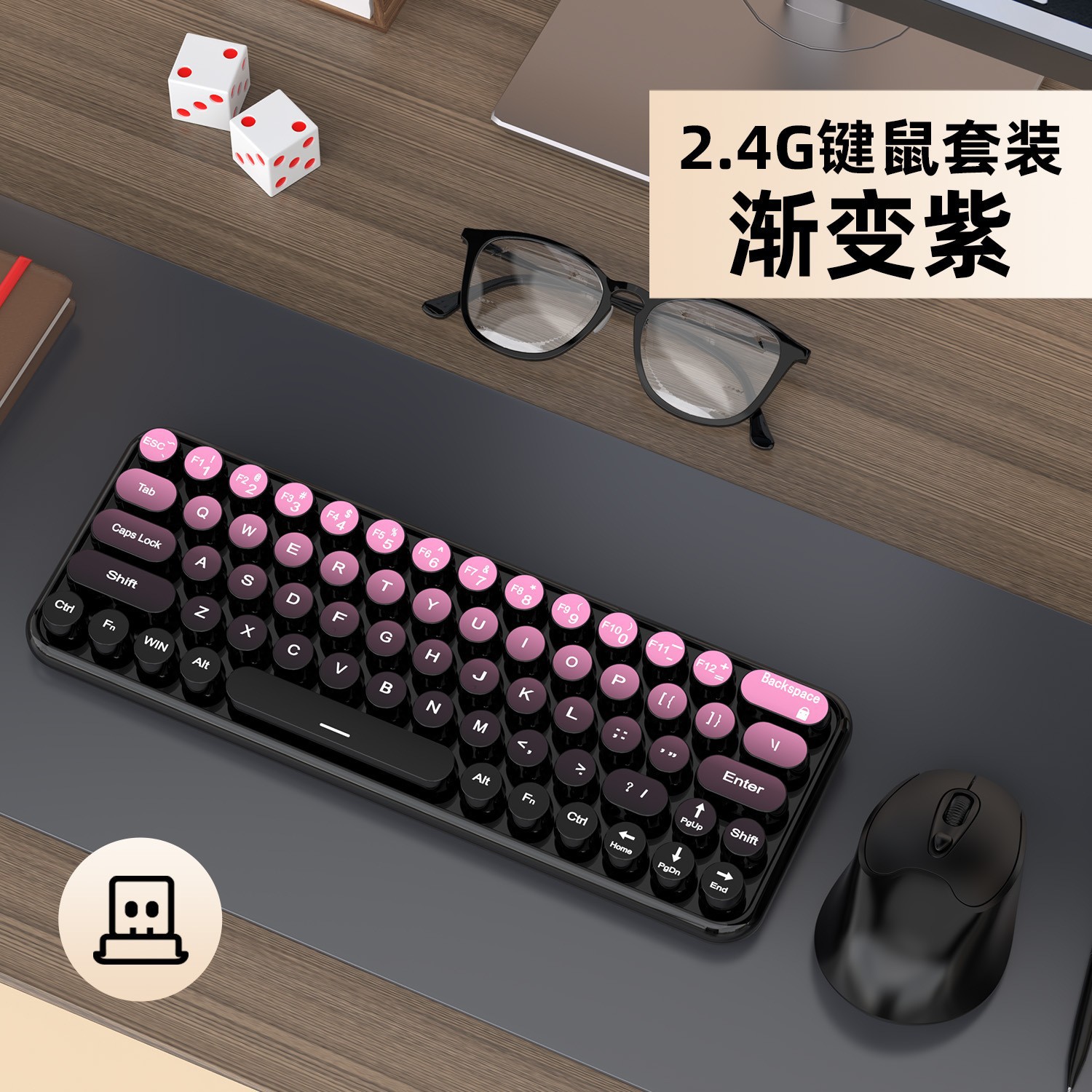 渐变紫—2.4G电池款-单键盘
