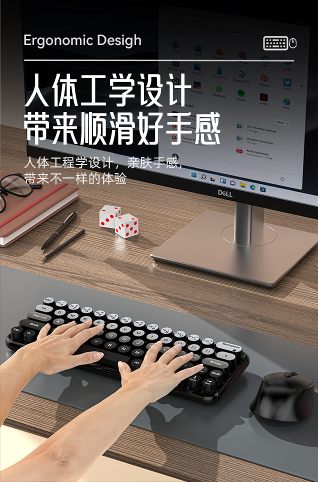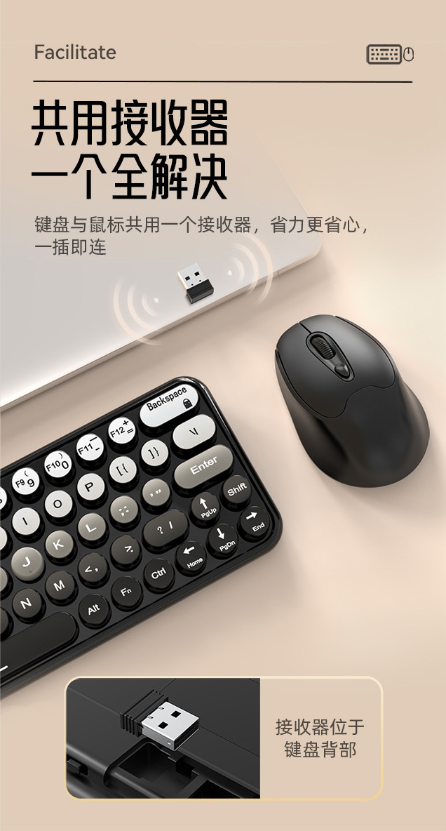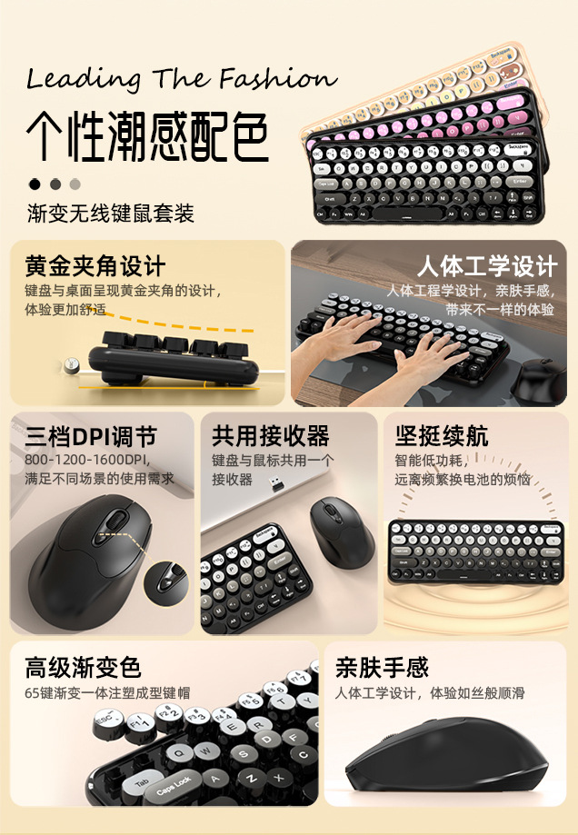 MK260无线键盘鼠标套装2.4G朋克键帽渐变色电脑笔记本商务办公USB