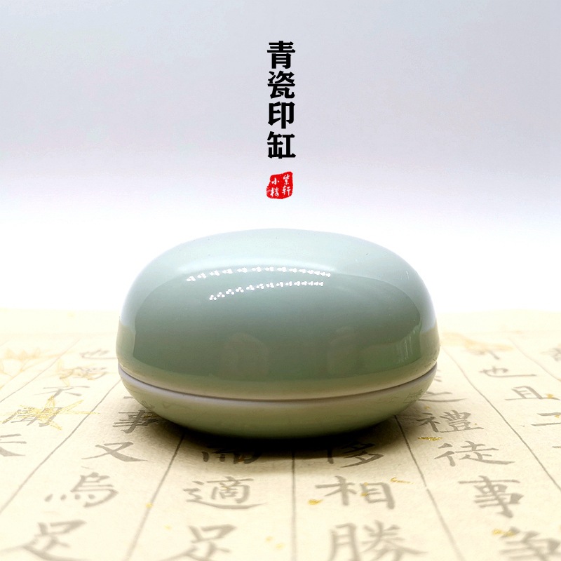 青瓷陶瓷印泥盒小号中号大号瓷缸书画国画篆刻印章朱砂印泥