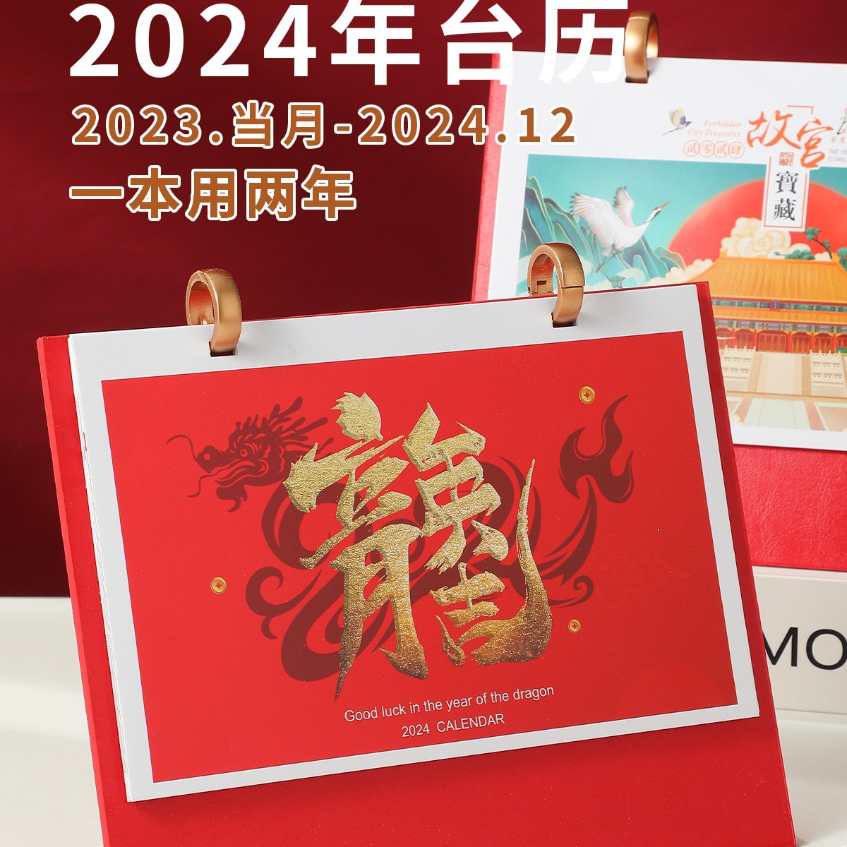 日历公司龙年商务办公香港假期台历红色高考考研摆件企业礼