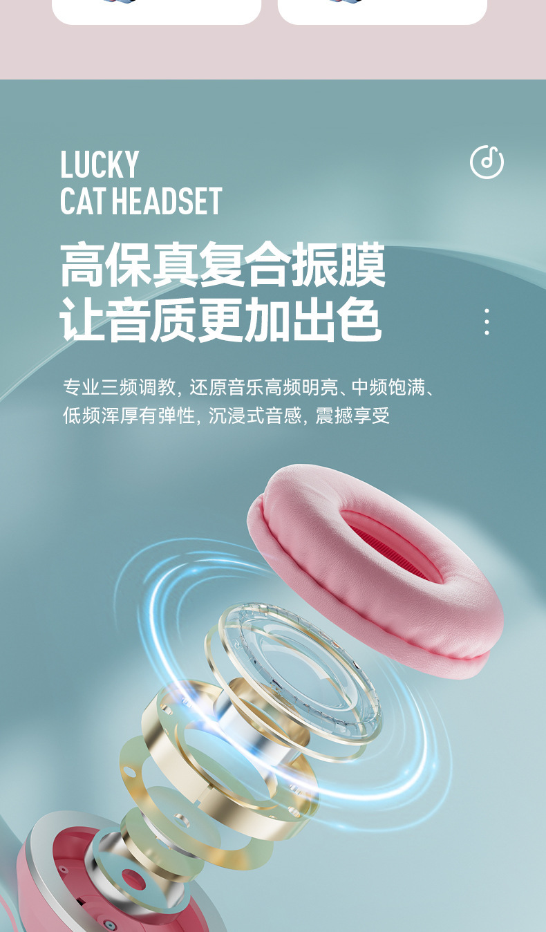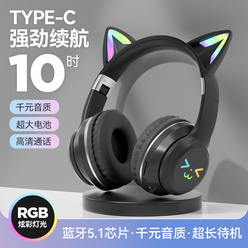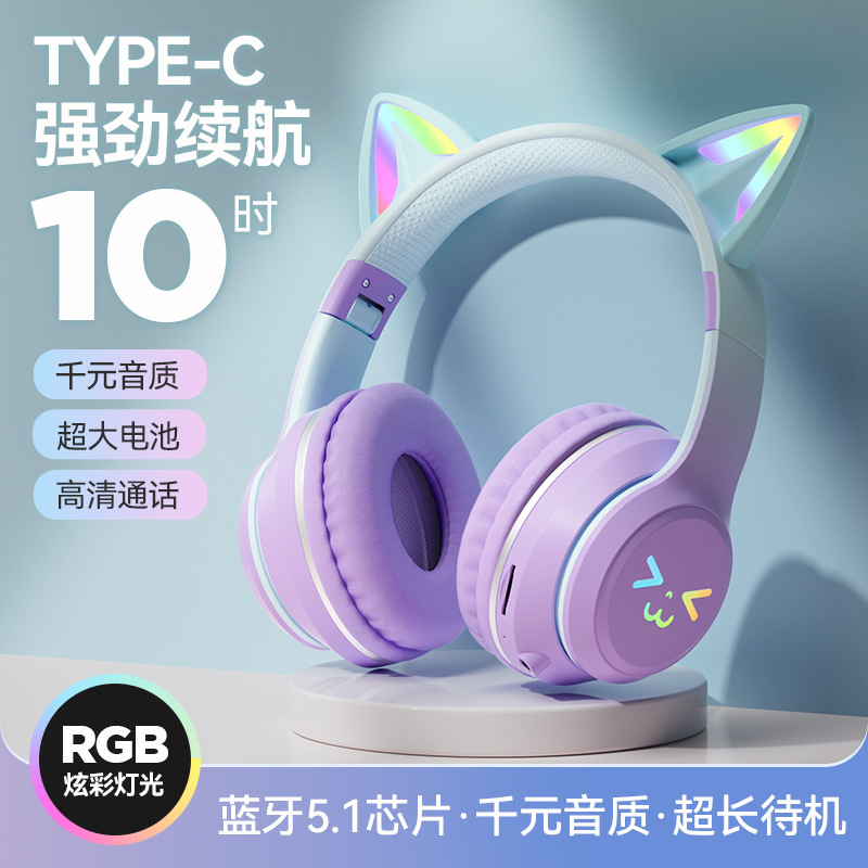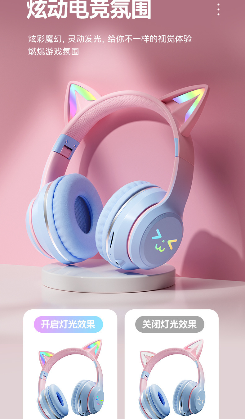 爆款头戴蓝牙耳机BT612猫耳发光渐变色电竞主播音乐无线耳麦