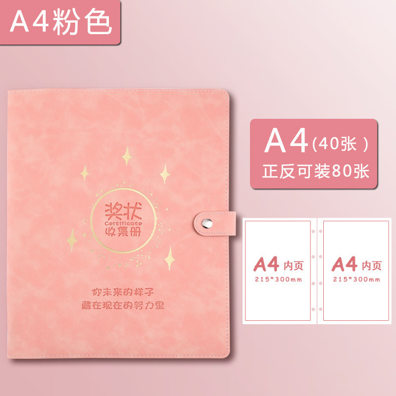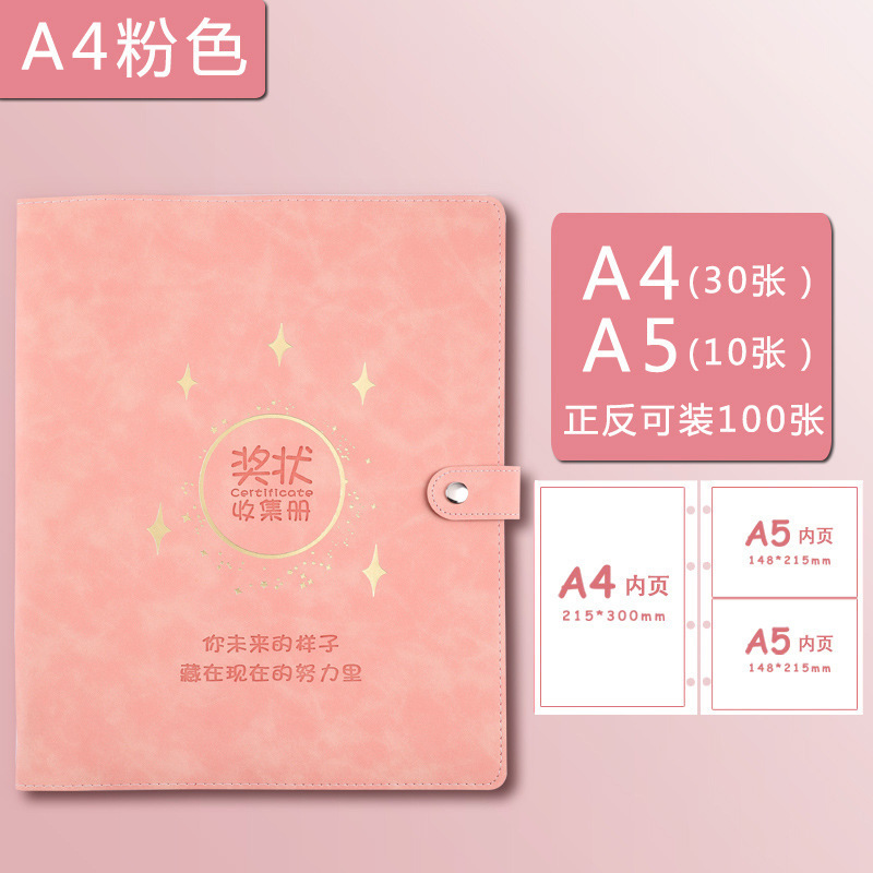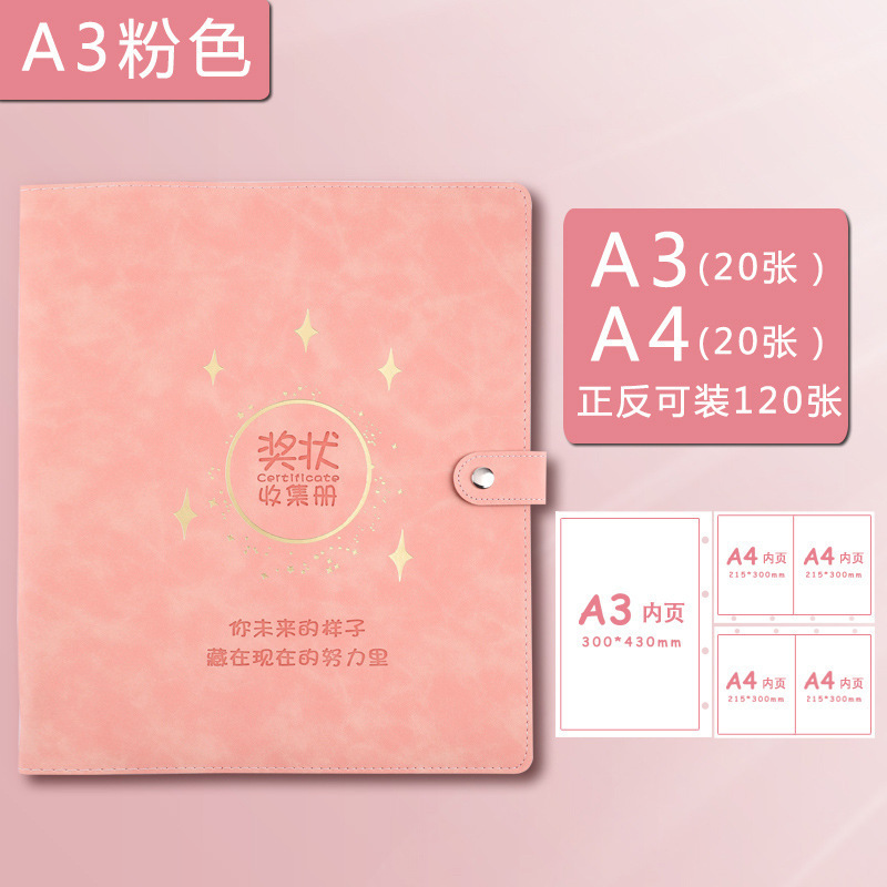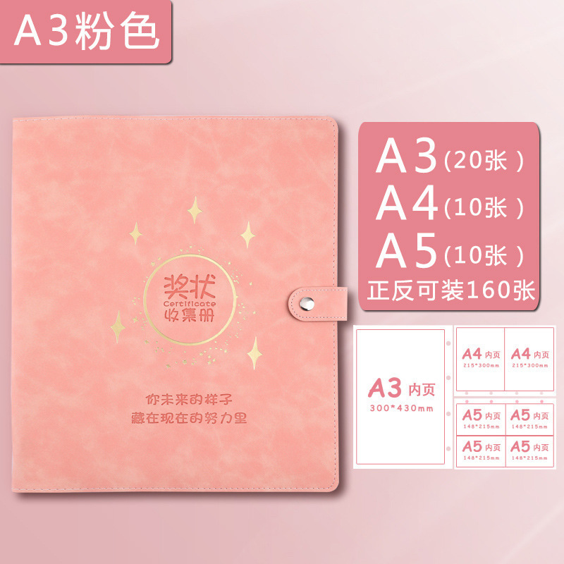 - (大号奖状必备)05款粉色A3+A4+A5正反可装160张