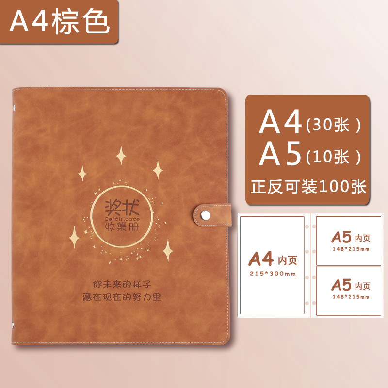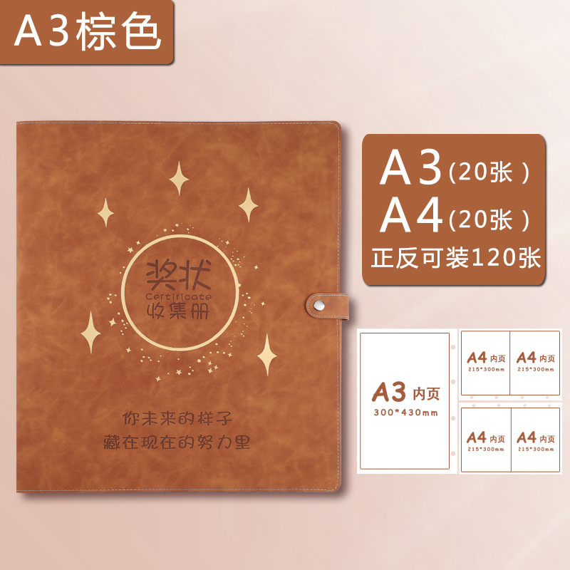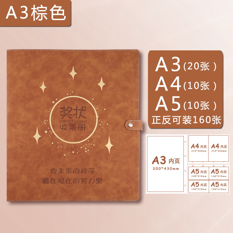 - (大号奖状必备)05款棕色A3+A4+A5正反可装160张