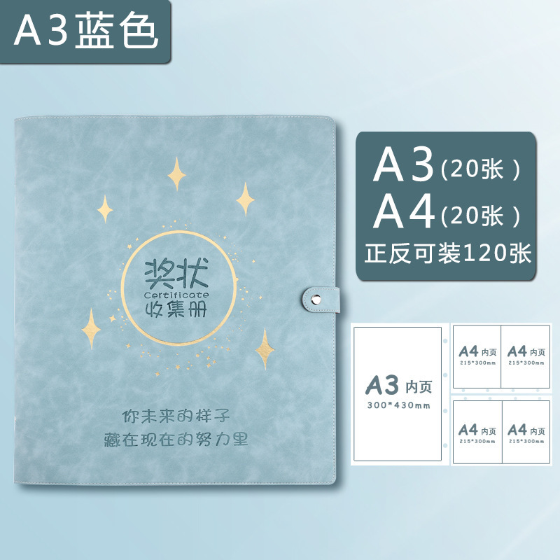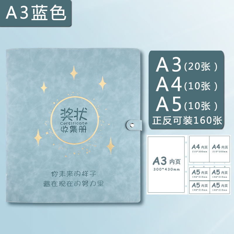 - (大号奖状必备)05款复古青A3+A4+A5正反可装160张