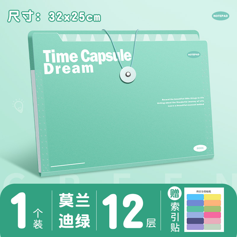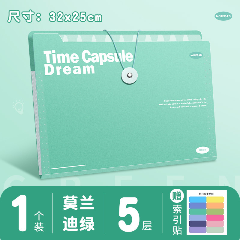 绿色【带扣风琴包】5层
