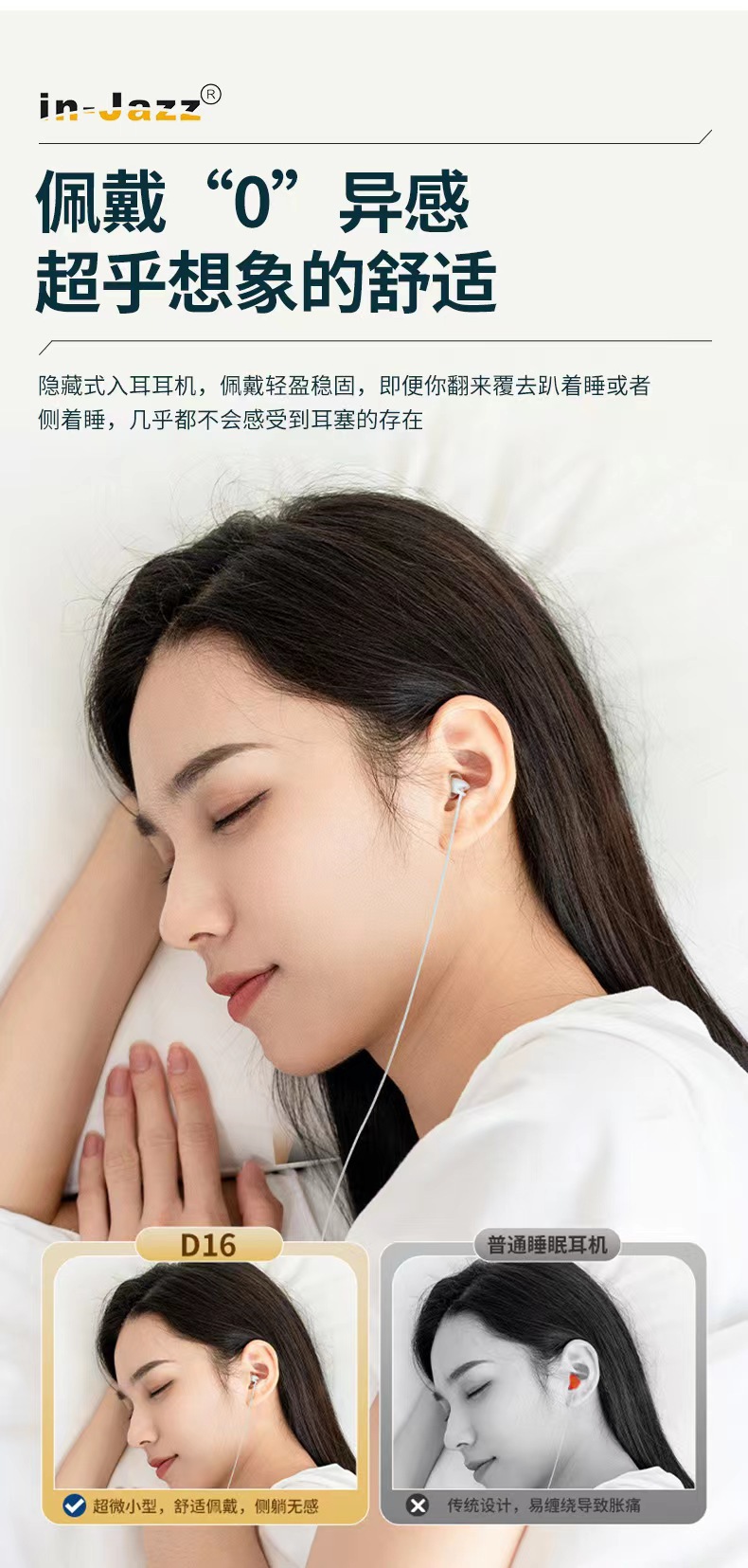 睡眠耳机有线入耳式睡觉隔音侧睡不压耳Type-C高音质带线耳机