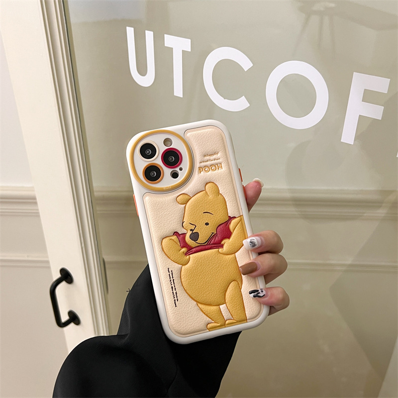 可爱维尼熊苹果17手机壳iPhone16promax皮质15/12卡通15Pro女13软