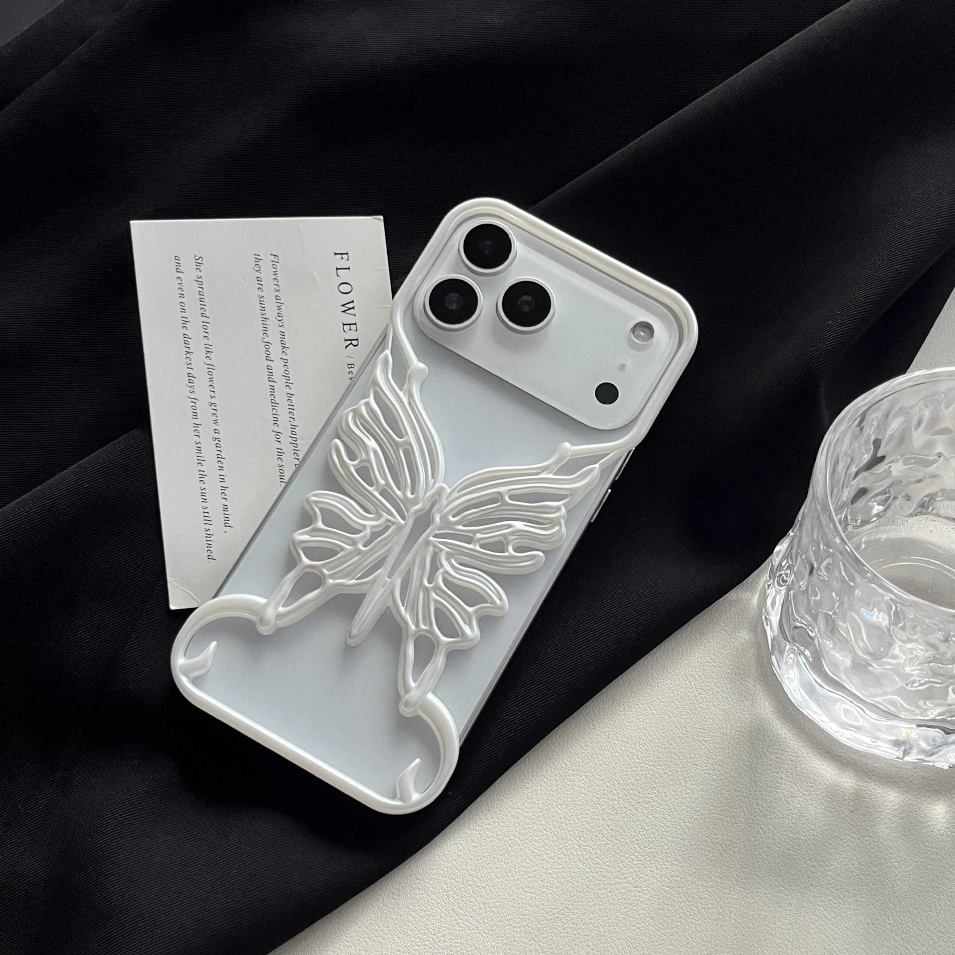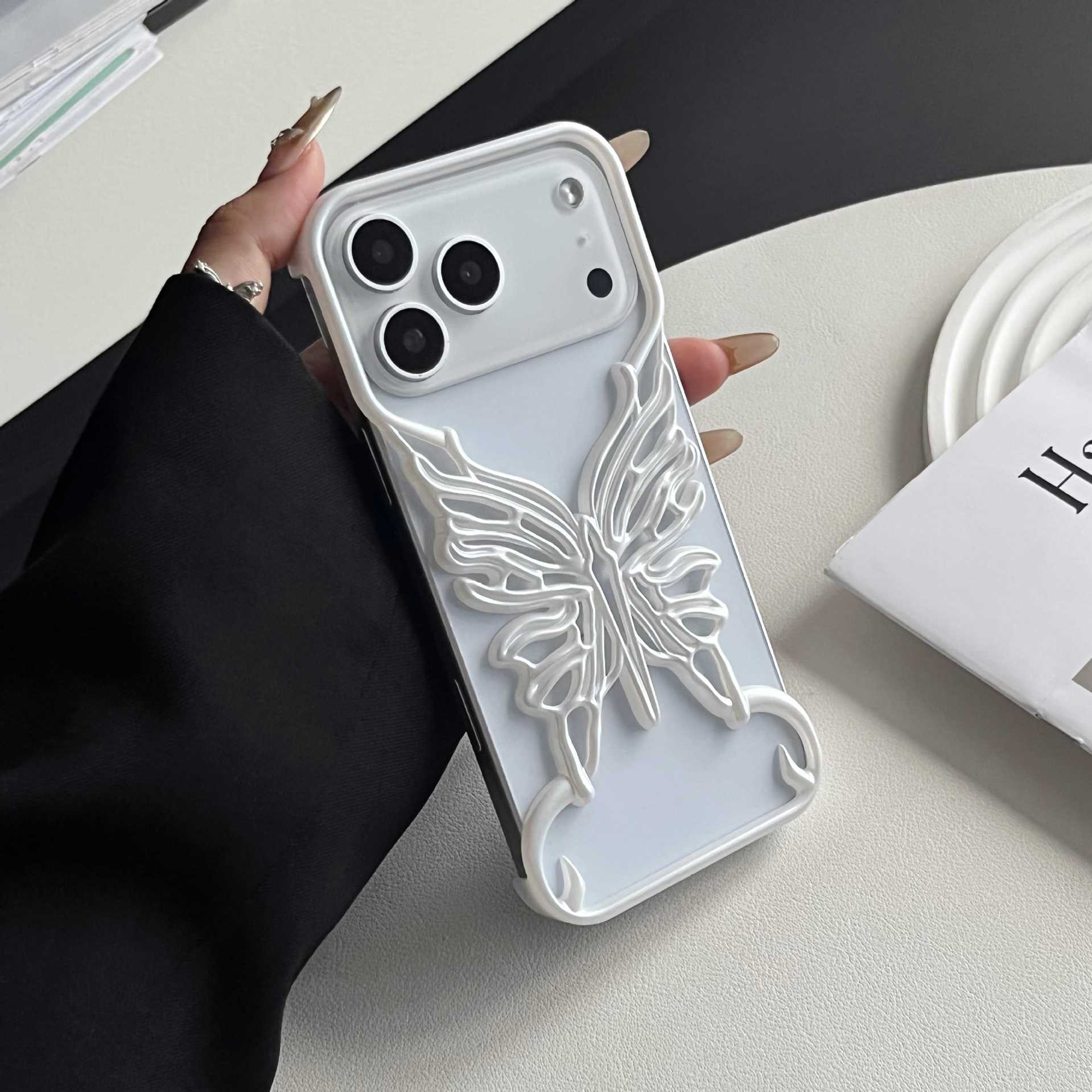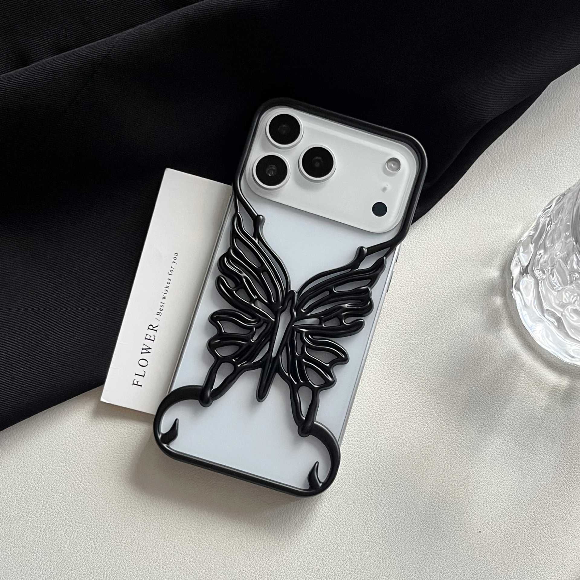 电镀镂空立体蝴蝶适用iPhone17pro 手机壳苹果15新款散热壳