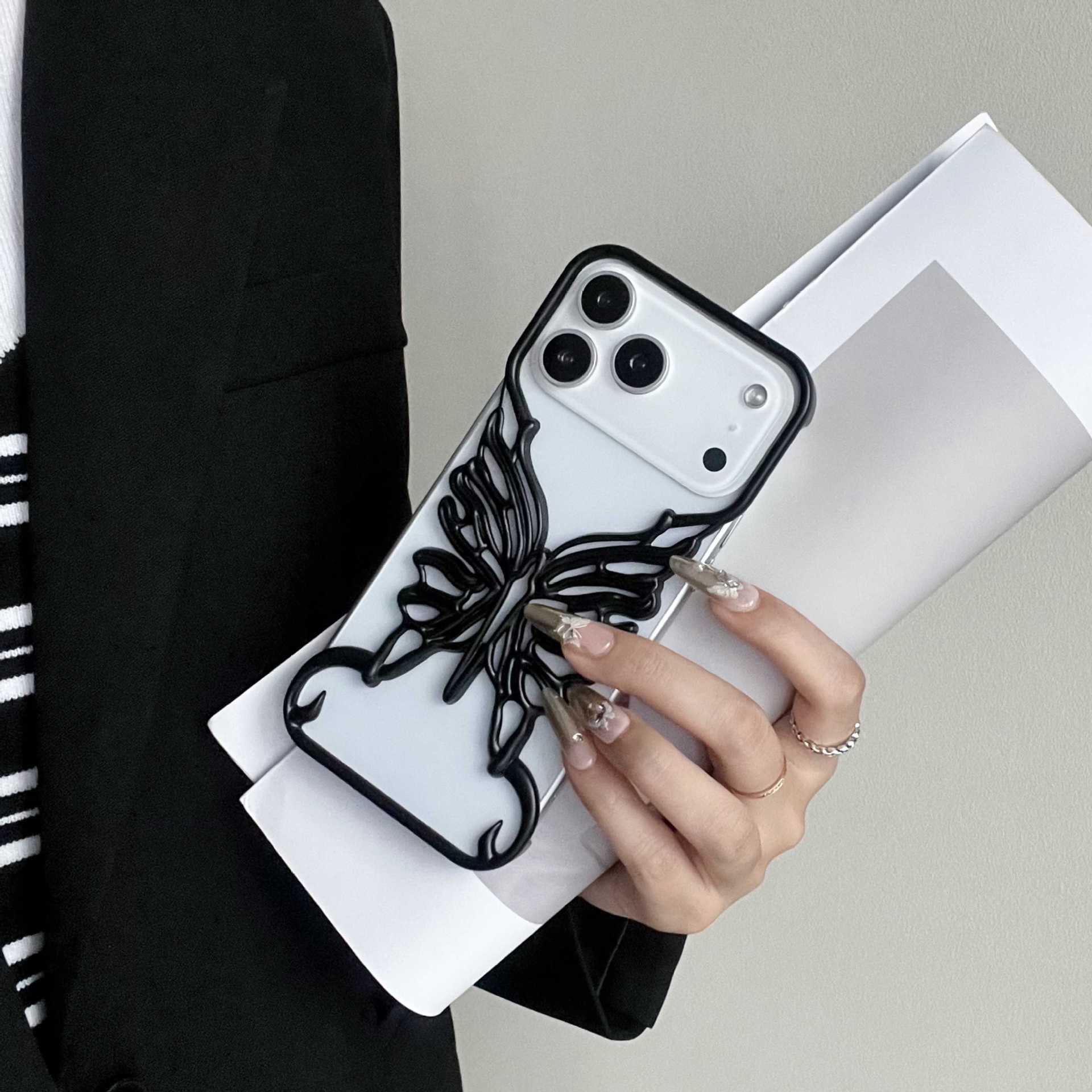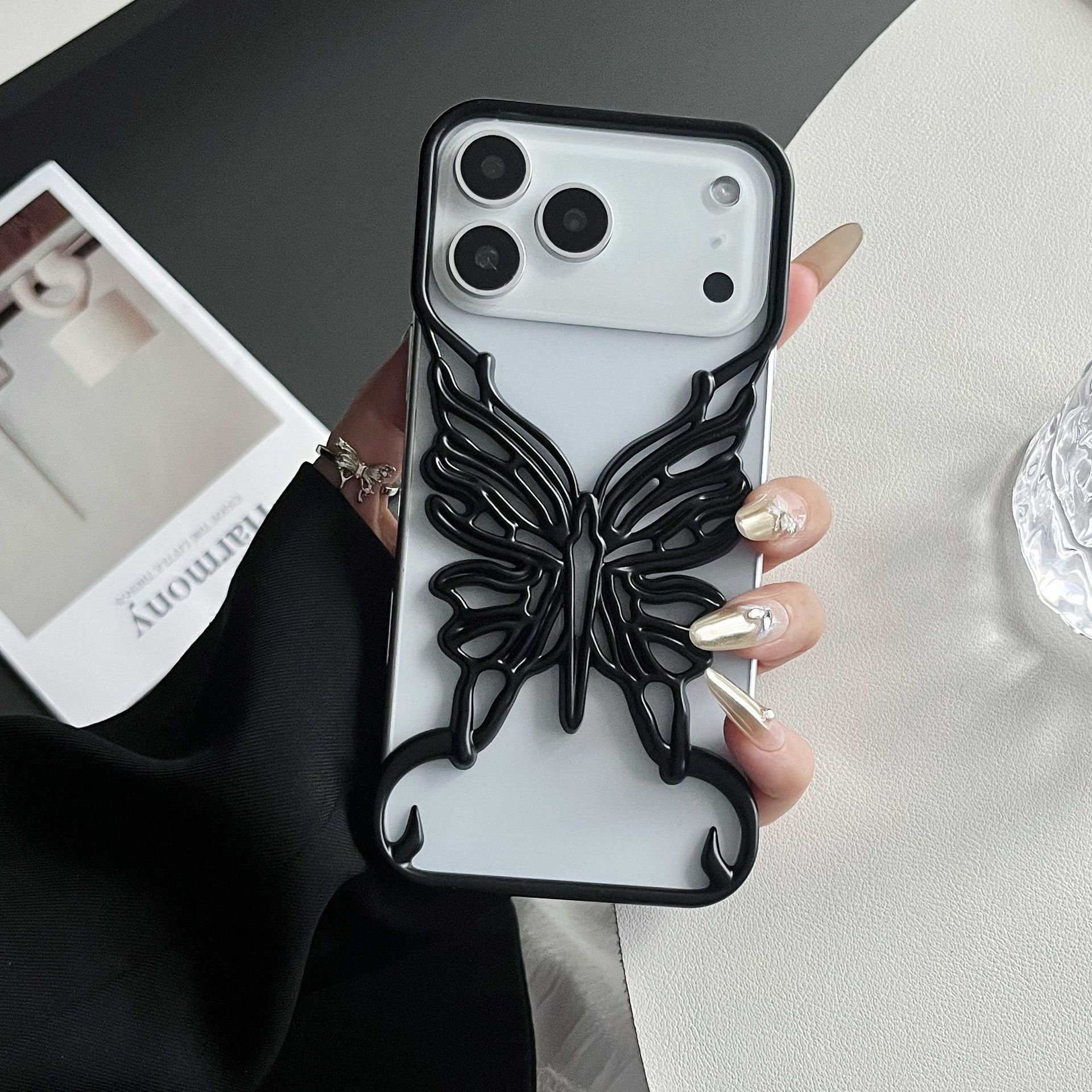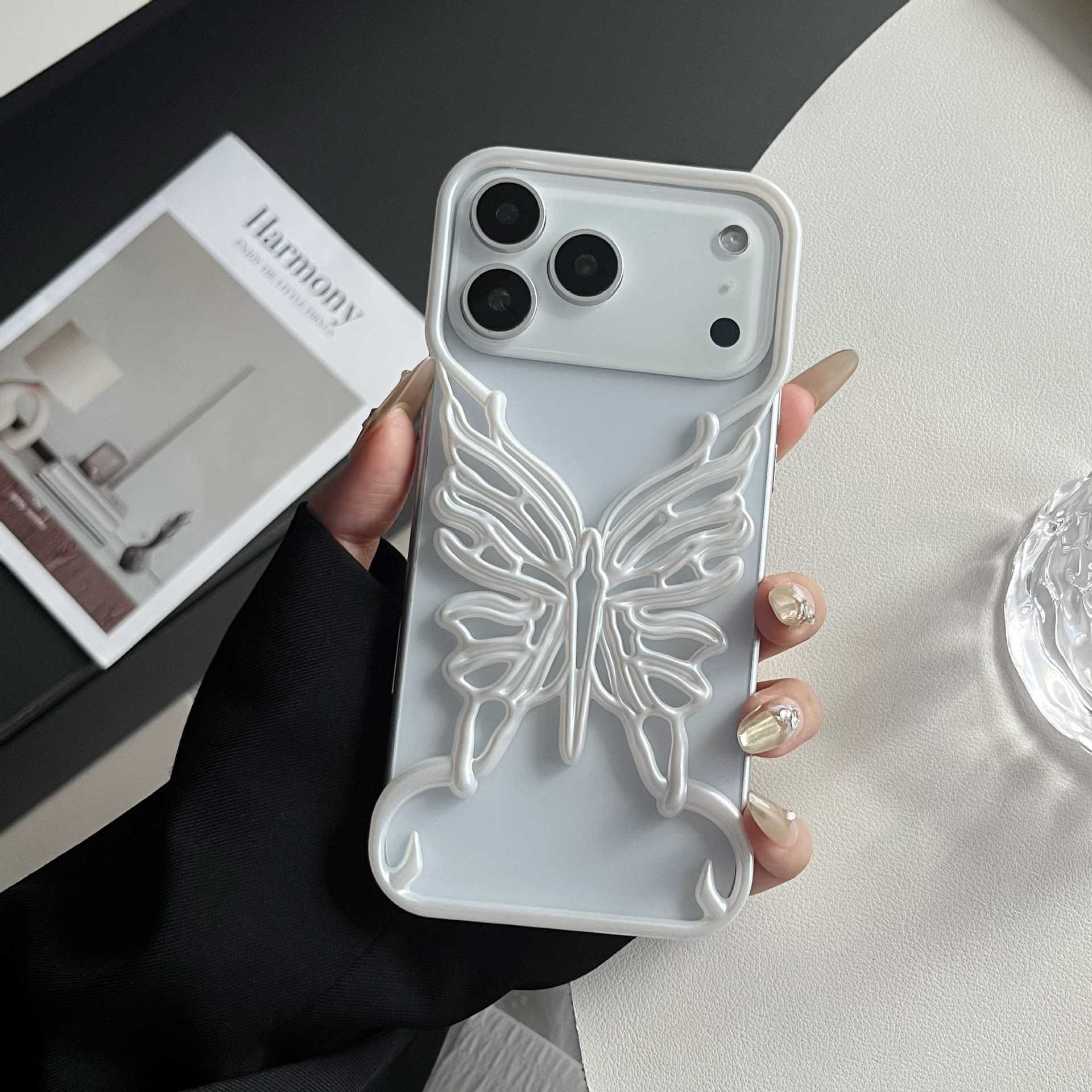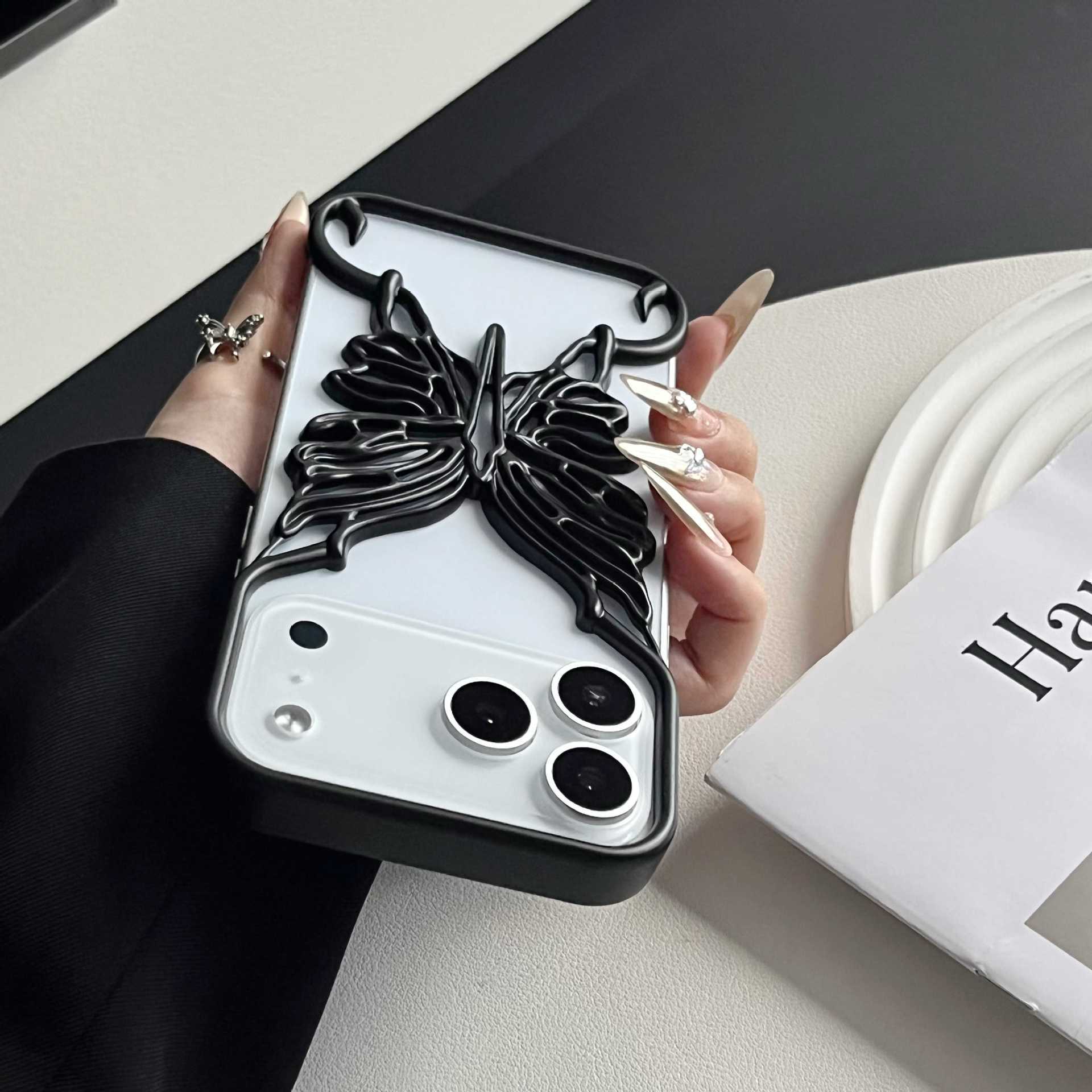 电镀镂空立体蝴蝶适用iPhone17pro 手机壳苹果15新款散热壳