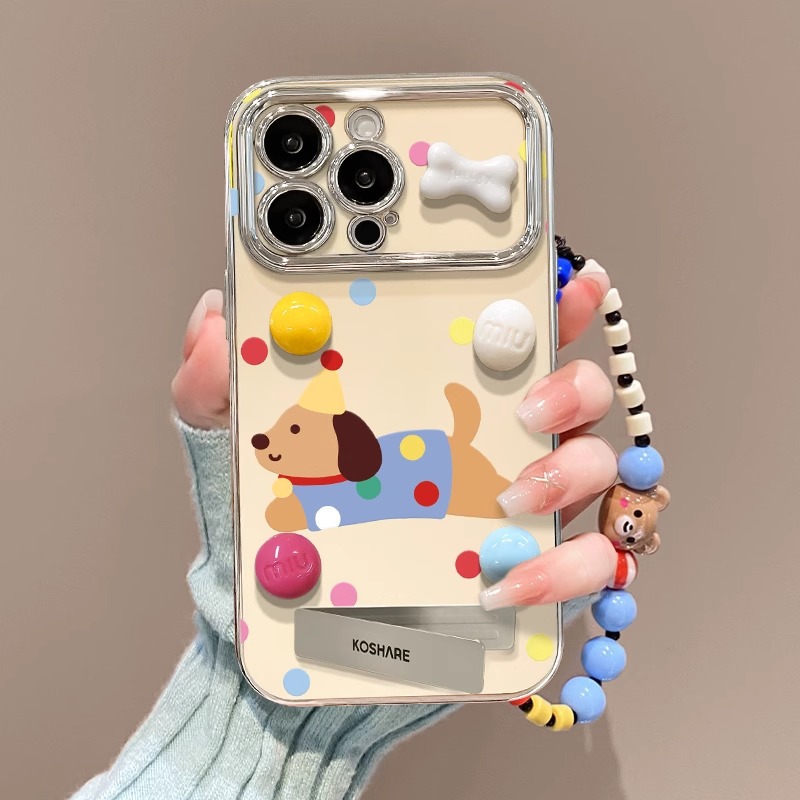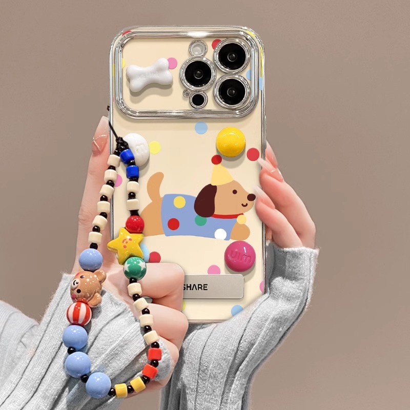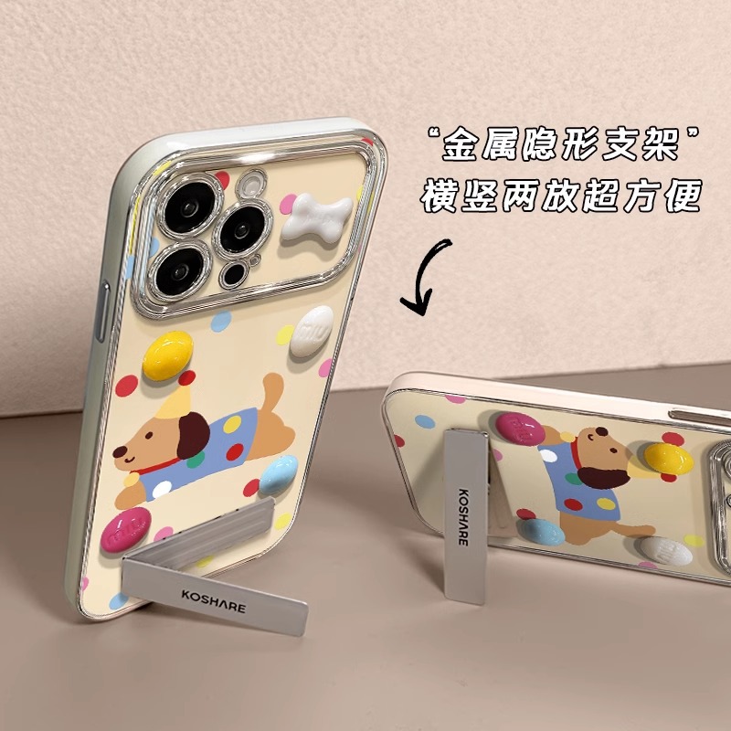 彩色波点狗狗IPhone17promax新款立体15pro支架手机壳适用14/16软