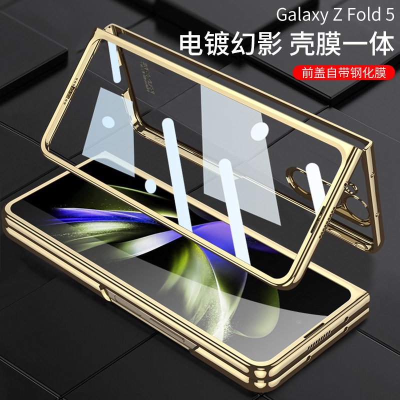 适用三星zfold5手机壳 fold7透明电镀壳膜一体高级保护套