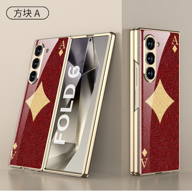 三星fold6折叠屏手机壳fold7创意风轻奢电镀硬壳玻璃彩绘
