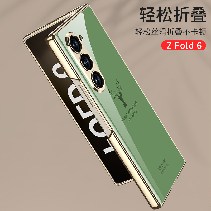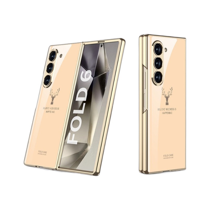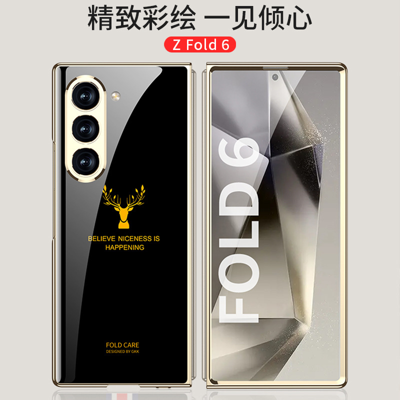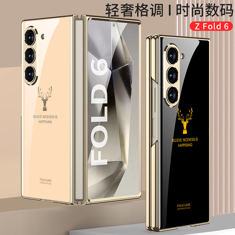 适用三星 fold6电镀防摔手机壳玻璃图案折叠屏硬壳