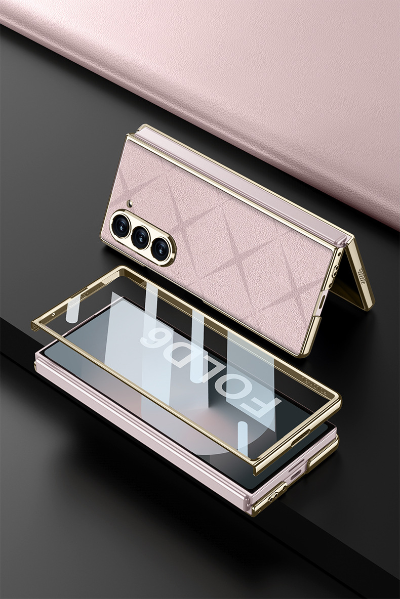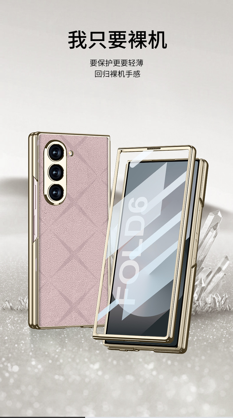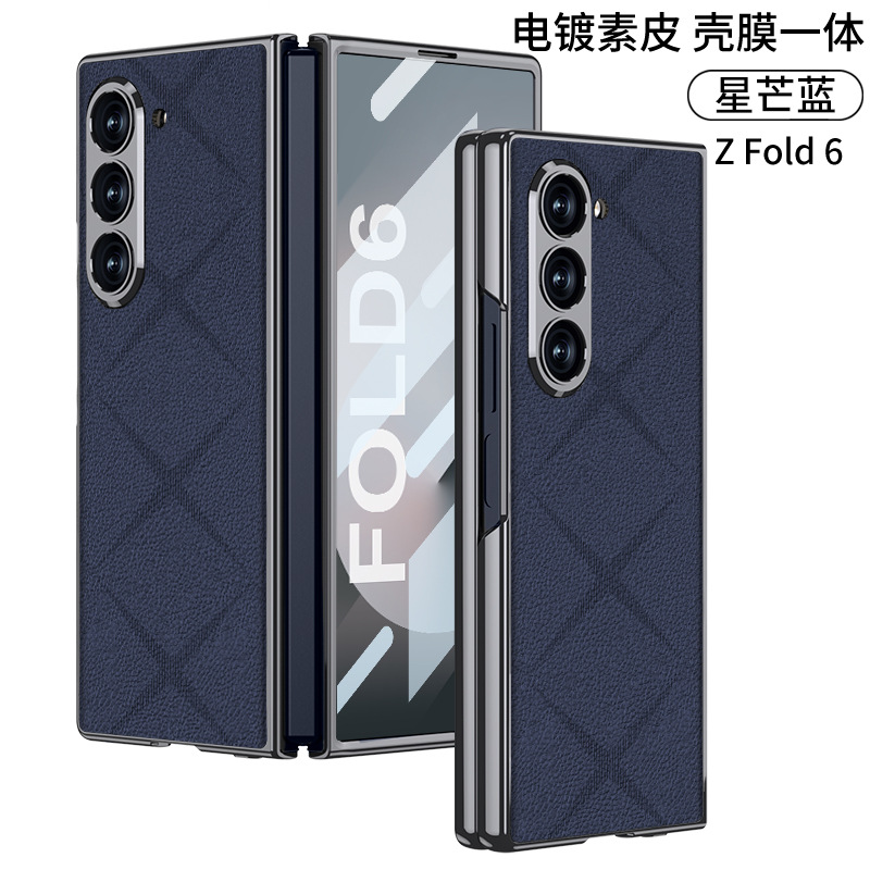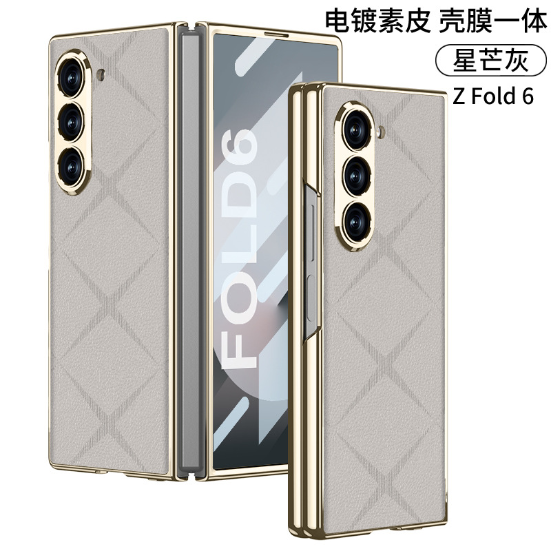 适用三星zfold6手机新款折叠屏电镀素皮星芒简约风保护套