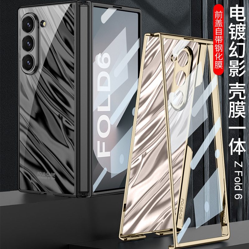 适用三星Zfold6折叠手机壳电镀边框幻影光学超薄波浪纹保护套