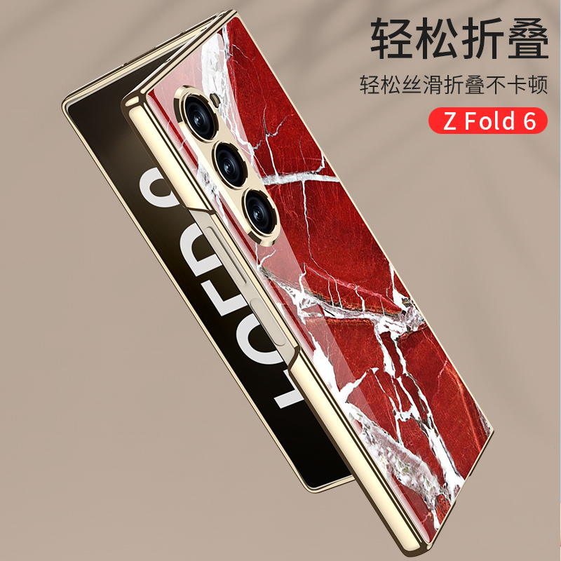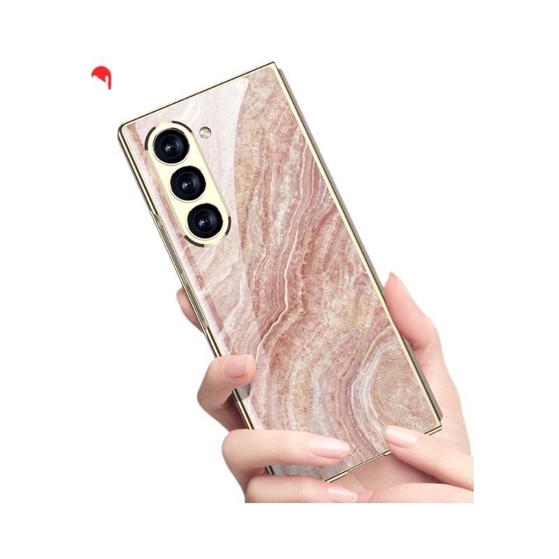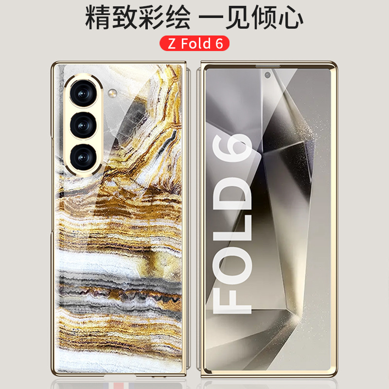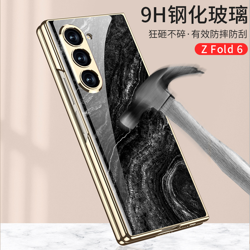 大理石手机壳适用三星fold6玻璃壳简约风男女时尚电镀硬壳