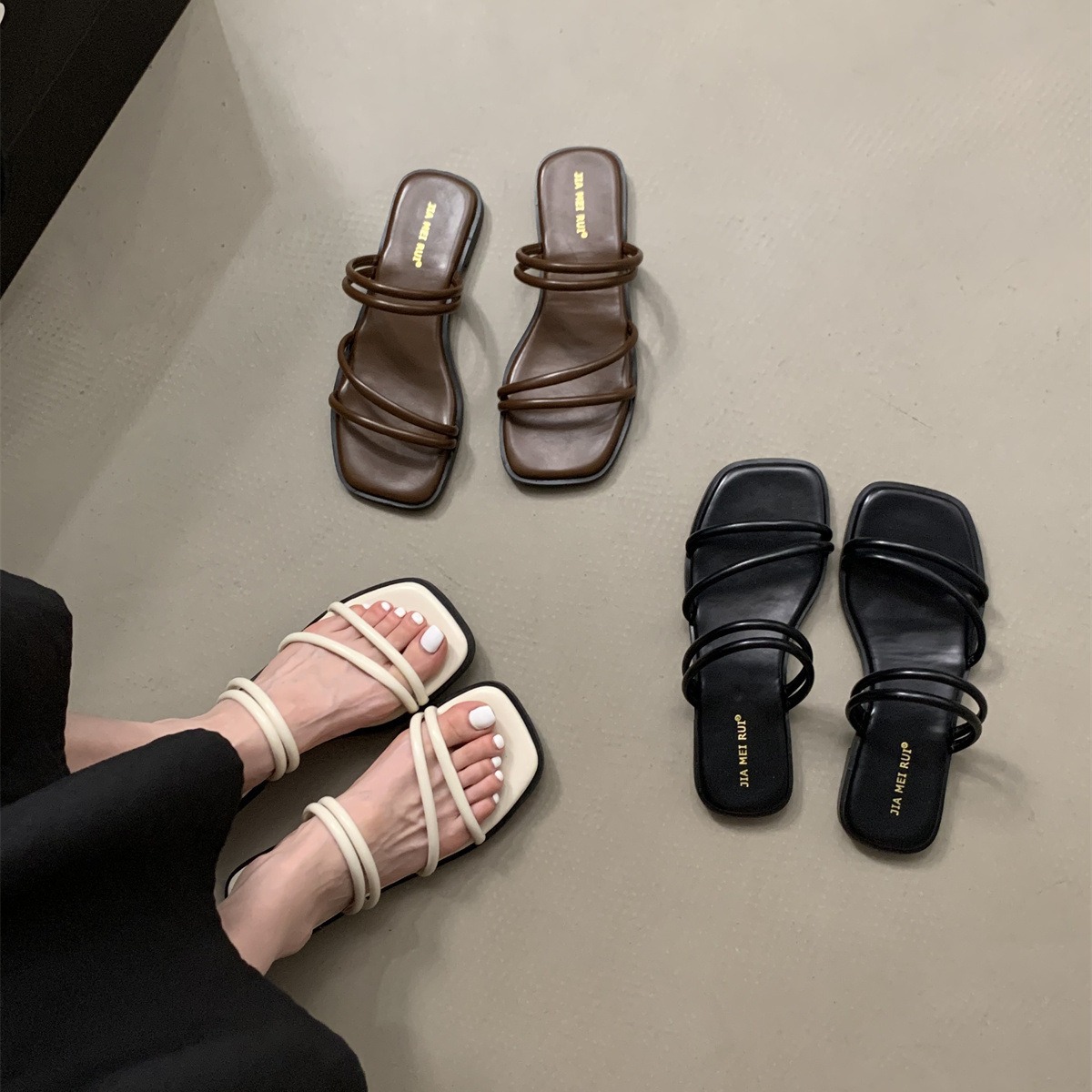 法式晚风一字拖鞋女夏季外穿新款韩版仙女复古细带平底凉鞋