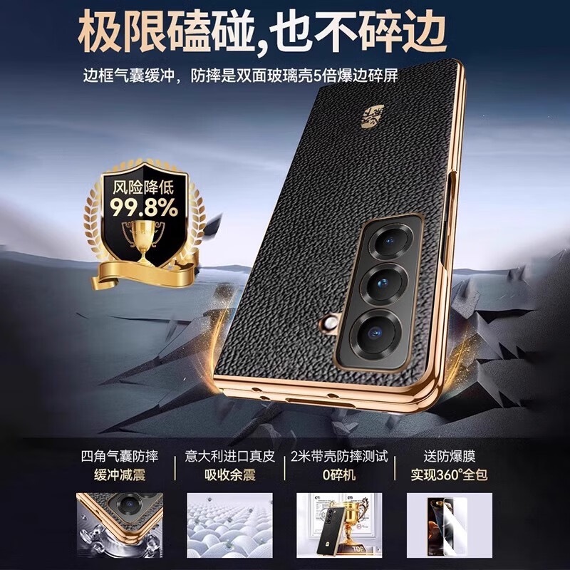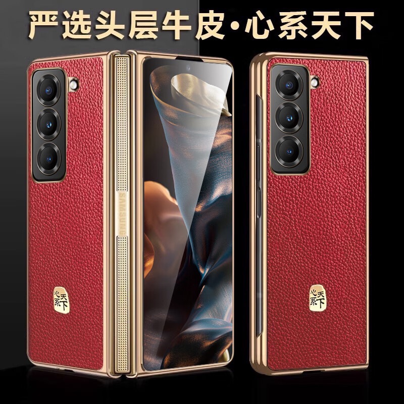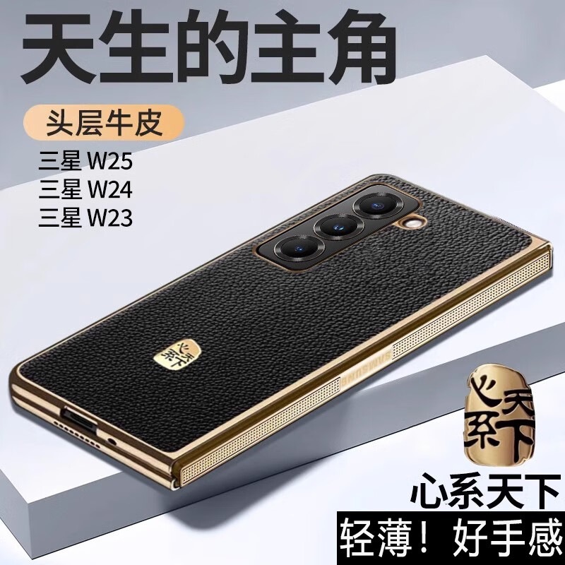 三星W25折叠屏鎏金真皮分体款手机壳Fold6带心系天下金属标套